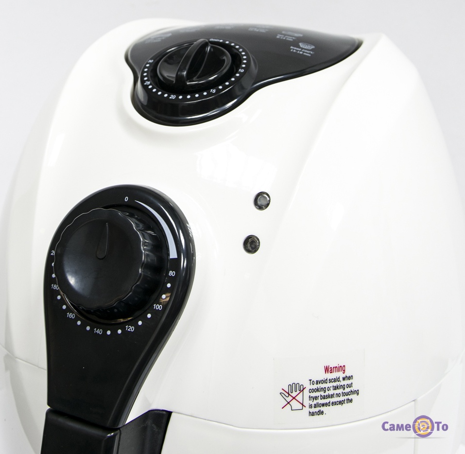 Іншими словами перед нами аерогриль (повітряний гриль) для будинку. За допомогою нього ви зможете підсмажити або просушити продукти у фритюрі, використовуючи при цьому мінімум жиру та олії. Більш того, цей аерогриль підійде і для тих людей, які дотримуються принципів правильного харчування або дієти, для тих, хто зовсім не вживає в їжу олію. А все завдяки тому, що аерофритюрниця готує їжу за допомогою використанню гарячого повітря. Тобто готові страви можна сміливо вживати і дітям, які чутливі до жирної їжі, і пенсіонерам, контролюючим рівень холестерину в крові.
