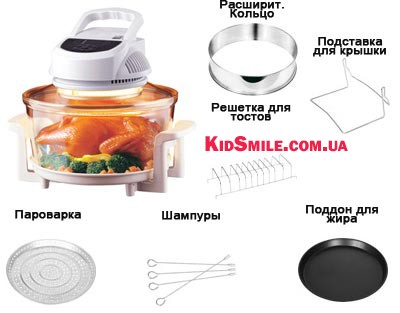 В своей работе аэрогриль использует инфракрасные лучи, галогенное тепло и метод конвекции, что позволяет сократить время приготовления блюд на 25%, электроэнергию и энергию, затраченную Вами на кухне. Уникальный дизайн позволяет равномерно распределить поток горячего воздуха и, следовательно, приготовить еду быстрее, и Вам больше не придется бесконечно долго ждать, чтобы насладиться вкусным ужином. В аэрогриль можно класть, как свежую, так и замороженную еду, а он уже позаботится о том что бы сделать блюдо сочным, вкусным и главное полезным.