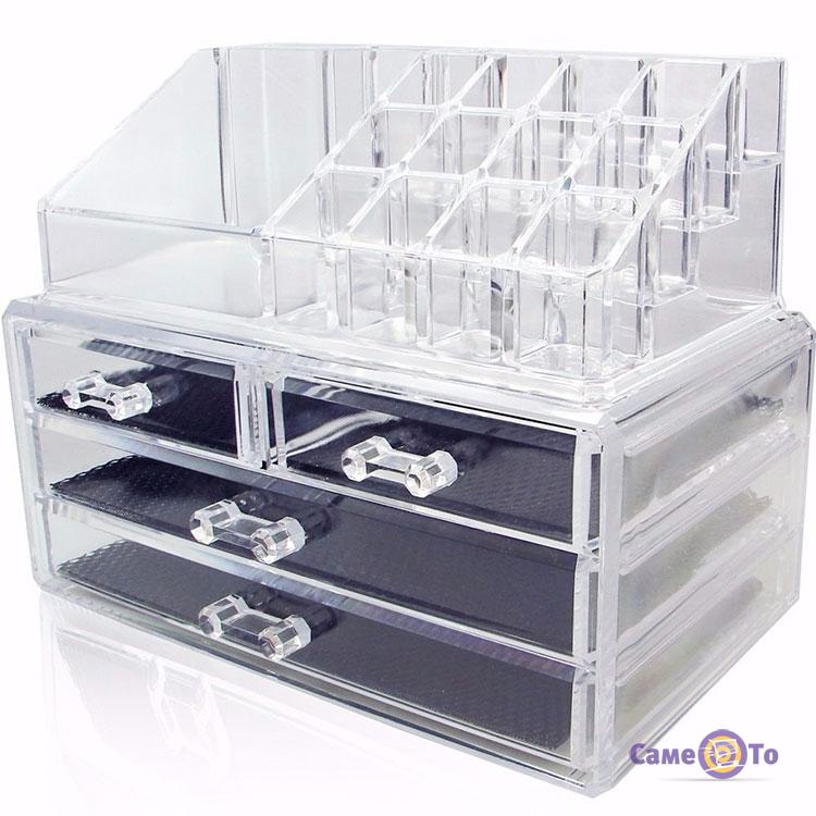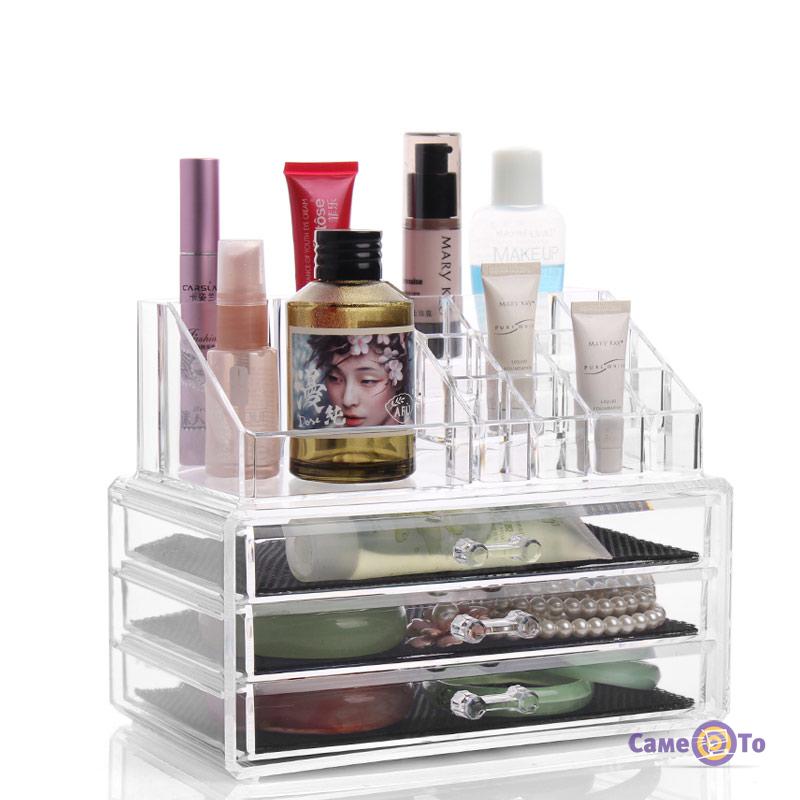 Органайзер для косметики Cosmetіc storage box виготовлений з міцного прозорого акрилу. Він має багатоярусну структуру, що дозволяє заощадити простір на столі, тумбочці, підвіконні, полиці або будь-якому іншому місці, куди Ви поставите органайзер. І при цьому розмістити в ньому досить велика кількість різних предметів.
