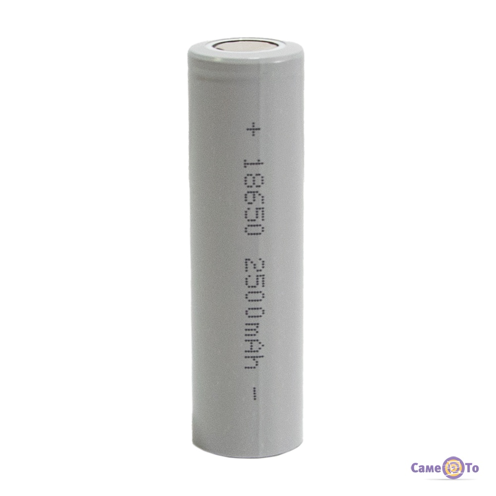Літієвий акумулятор 18650 ємністю 2500 mAh сірого кольору - це надійне та потужне джерело енергії для ваших пристроїв.