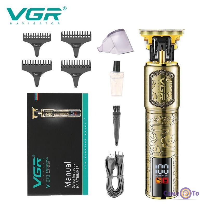 Акумуляторна машинка для стрижки волосся VGR V-073 Золотий - універсальний пристрій для догляду за волоссям та бородою.