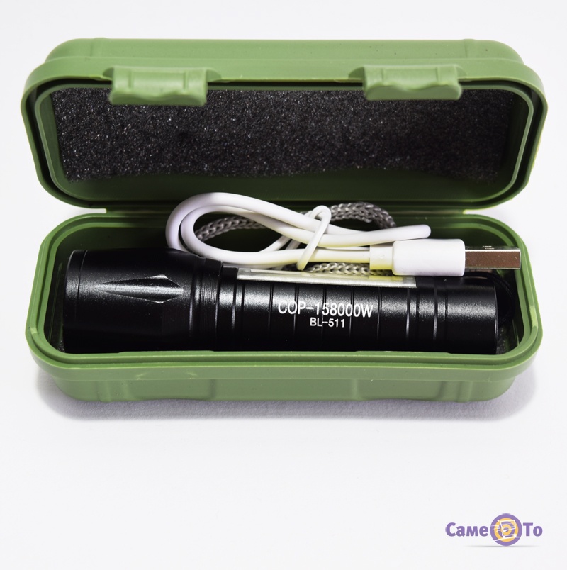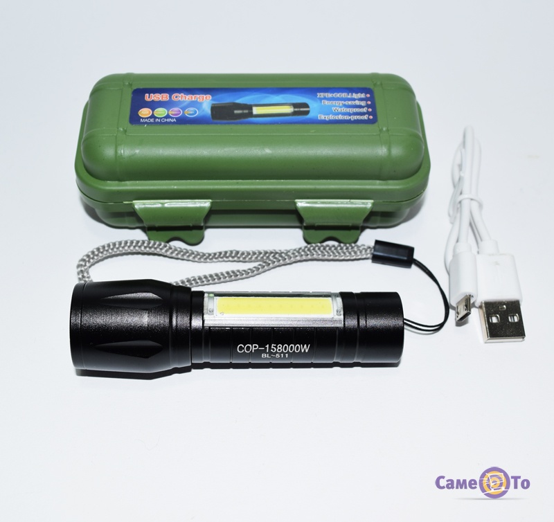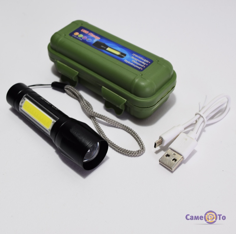 Джерело світла ліхтаря: яскраві світлодіоди (XPE + COB). Живлення ліхтаря відбувається від акумулятора, що йде в комплекті, який легко і просто можна зарядити від USB.