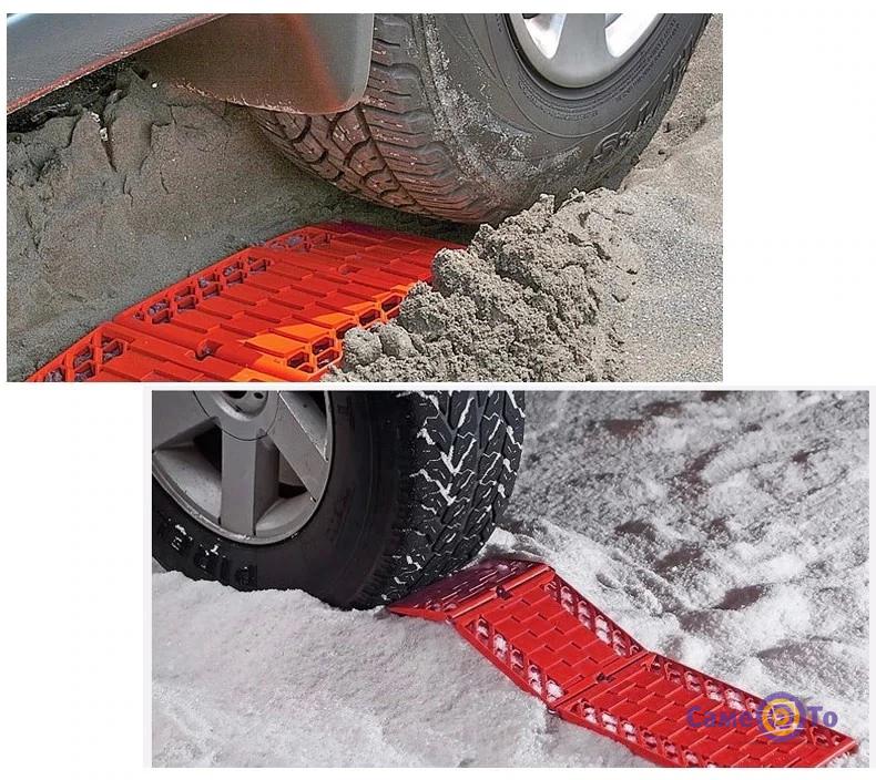 Ці стрічки, що складаються з трьох секцій які скріплені одна з одною, покриті опуклостями у вигляді грат. Якщо цих стрічок на колесах не буде, то застрягши в багнюці, вам буде дуже нелегко звідти вибратися, і до того ж доведеться сильно забруднитися. А якщо ви, приміром, їхали на роботу, то одяг вимазувати зовсім не хотілося б. Маючи антипробуксовочні стрічки Tyre Grip Tracks вам не складе проблем вибратися з цієї колотнечі і продовжити шлях по бажаному маршруту.