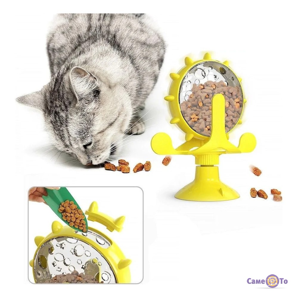 Автоматическая кормушка для кошек H2105F Желтая, игрушка кормушка для кота