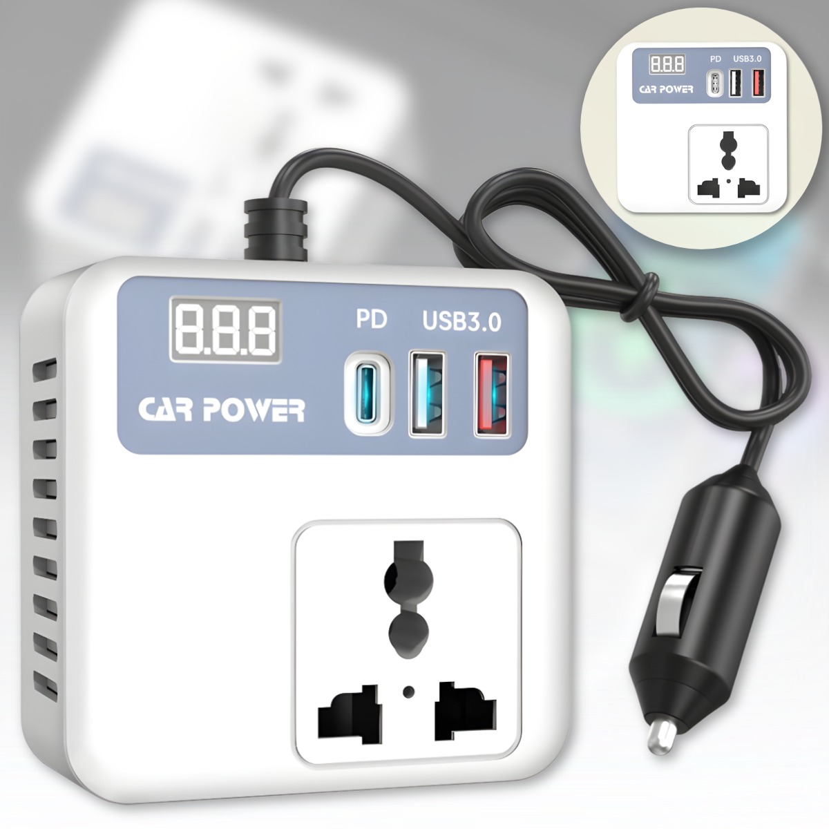 Цей автомобільний перетворювач ідеально підходить як автоінвертор для ноутбука, дозволяючи працювати або дивитися фільми у тривалих поїздках без страху розрядити батарею гаджета. Вбудований дисплей відображає поточний стан мережі, що робить пристрій не лише корисним, а й безпечним. Наявність портів USB і Type-C перетворює цей автомобіль перетворювач на універсальну зарядну станцію для всієї родини.