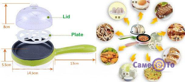 Як Ви зрозуміли, перед нами - міні-модель. Вона відрізняється абсолютно невеликими параметрами і радує своїм функціоналом. Будьте впевнені, ця мультиварка значно полегшить підготовку багатьох страв на кухні! Вона об'єднала в собі функції сковороди, каструлі і пароварки, тому з її допомогою можна приготувати багато смачненького. Тут виходить дуже смачна яєчня, омлет, млинці, соковита рибка, ароматний суп і навіть невелика піца. До речі, в цьому маленькому приладі можна одночасно зварити цілих 5 яєць. Для готування страв досить лише вибрати необхідний режим, і через парочку хвилин Ви будете насолоджуватися їх смаковими якостями.