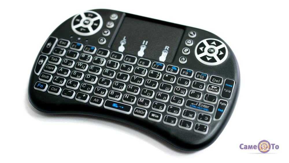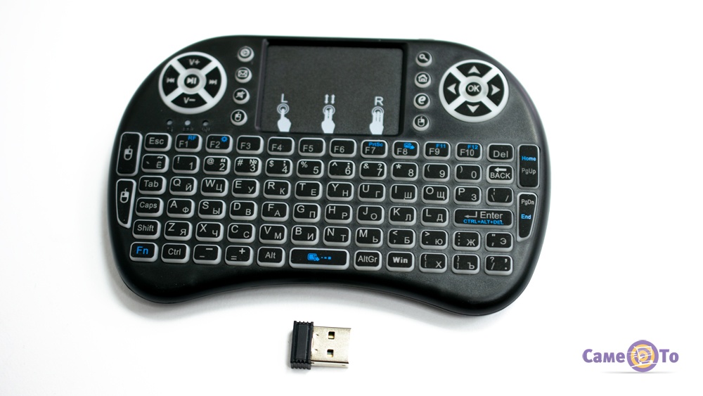 Іншими словами, це бездротова міні клавіатура миша. У темному приміщенні або в темний час доби вас приємно порадує підсвічування клавіш. Корпус девайса виготовлено із міцного пластика, а тому він обов'язково порадує вас своєю довговічністю. Працює бездротова клавіатура міні пк завдяки вбудованому акумулятору, в комплекті передбачено кабель для його зарядки. Ну а придбати такий корисний аксесуар ви можете в нашому інтернет-магазині, не виходячи з дому. Ми відправимо ваш замовлення в будь-який куточок країни зручною для вас транспортною службою доставки. Тепер працювати або грати на портативному ПК, приставці або іншому гаджеті невеликого розміру буде набагато комфортніше!