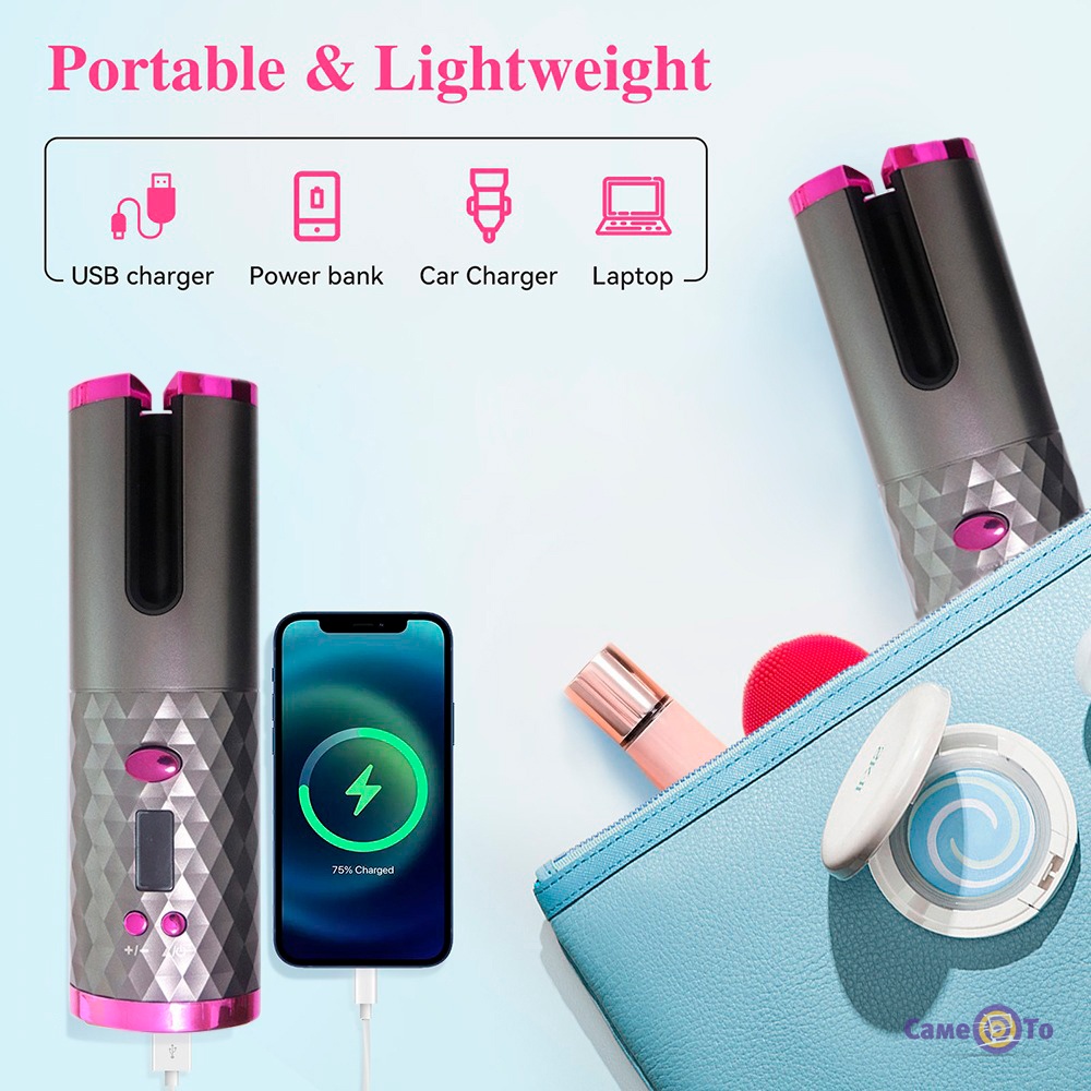 Wireless USB auto curler має компактний дизайн і легко розміщується в сумочці або рюкзаку, що робить її зручною для перенесення. За допомогою цієї плойки ви зможете створювати різні види локонів, від природних каскадів до щільніших завитків, які будуть триматися протягом тривалого часу.