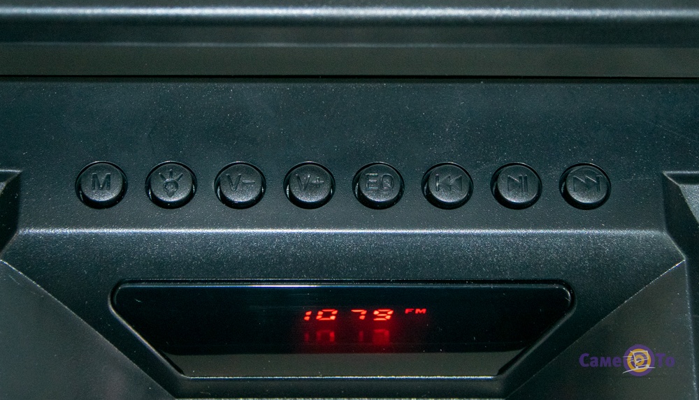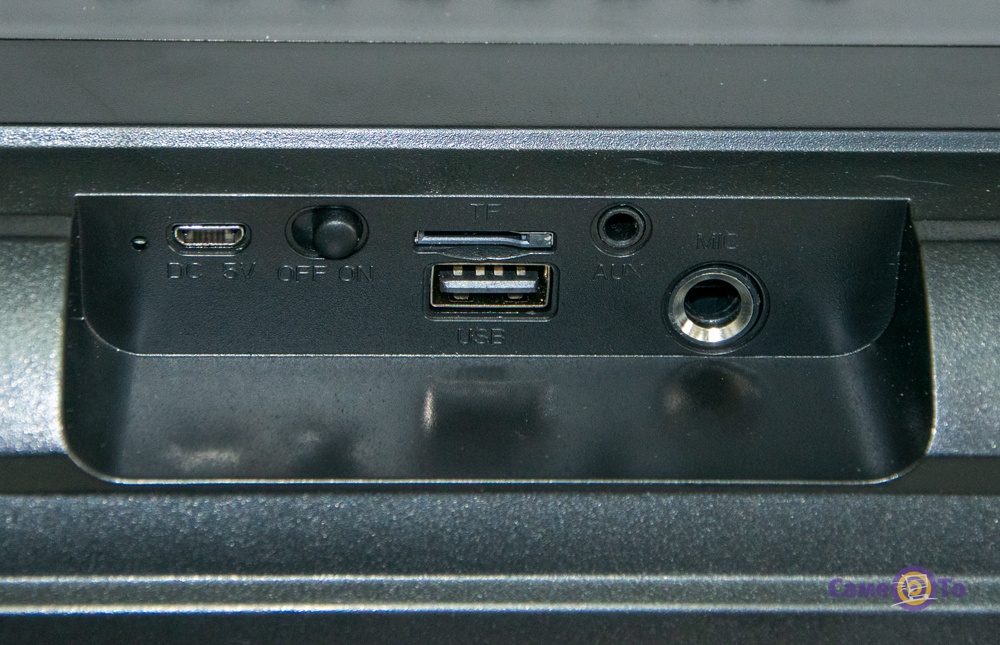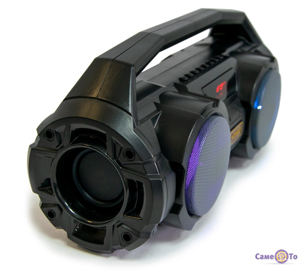 Колонка має роз'єми USB, TF, BT, FM, AUX і 6.5 jack.