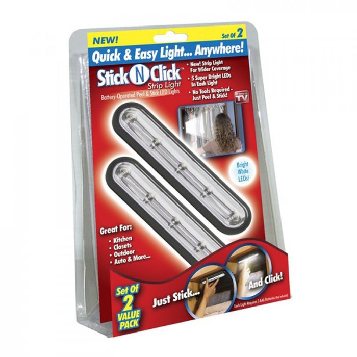 Не завжди є можливість провести світло на горище або в шафу. Шафа в цьому плані особливо виділяється. У таких ситуаціях, відмінно допомагають бездротові світильники Stick-N-Click - самоклеючі, накладні і для дому. Вони позбавлять вас від додаткових проводів і дозволяють працювати комфортно, не вдаючись до чужої допомоги. Це допоможе заощадити купу грошей і часу. Світильники Stick-N-Click дуже зручно встановлюються. Їх можна прикріпити за кілька секунд на будь-яку необхідну для Вас поверхню.