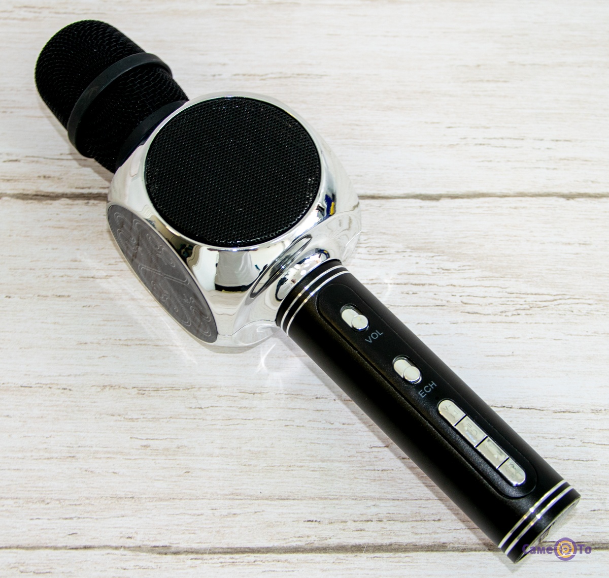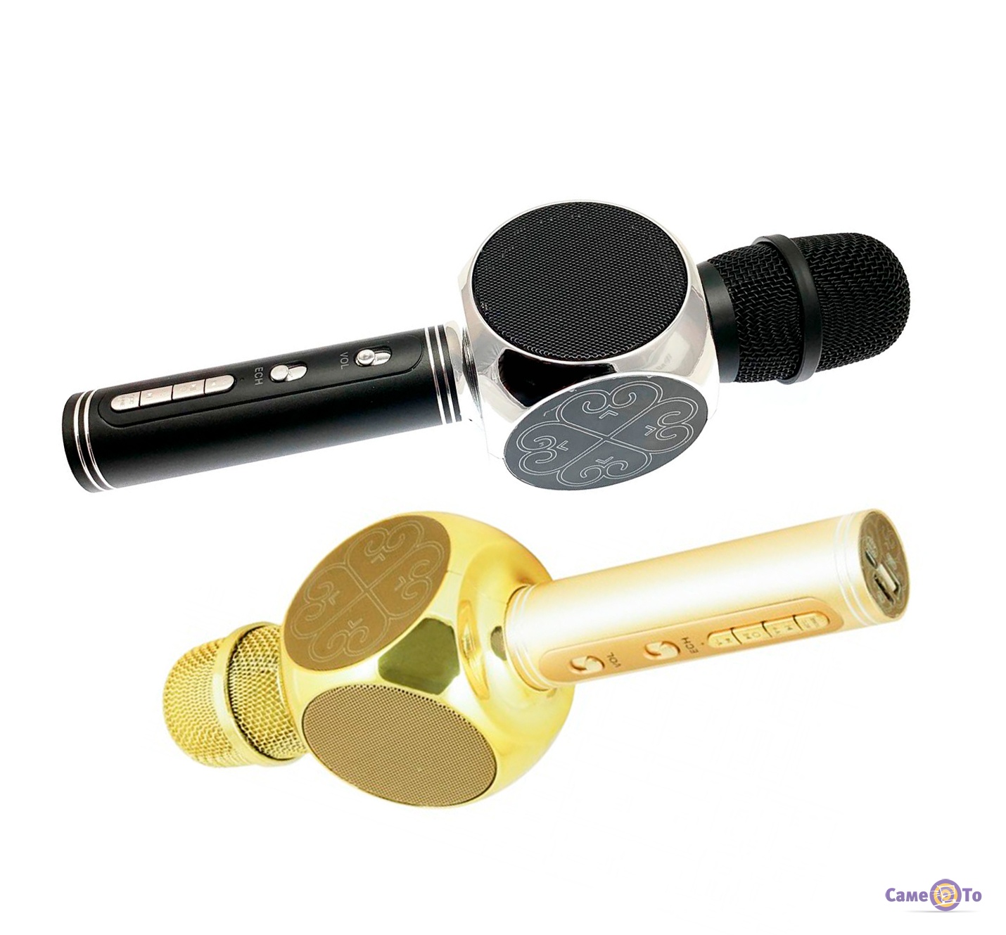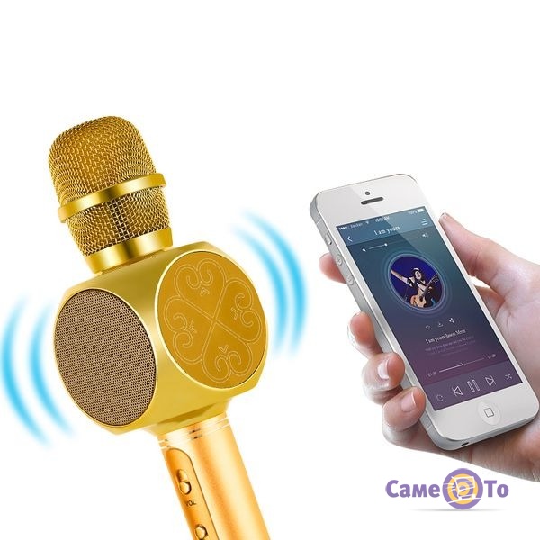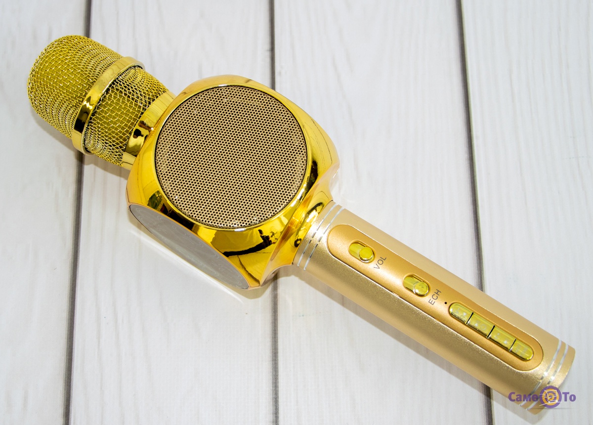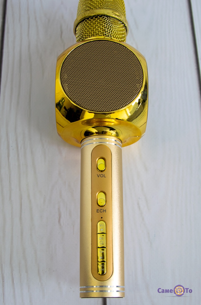 Музика для виконання пісень може бути включена двома способами. Перший - це bluetooth-технологія, коли шляхом бездротового зв'язку передається музика на мікрофон. Також, якщо мікрофон караоке купити, то можливе використання флешки з улюбленими мотивами, яка вставляється в спеціальний роз'єм. Аксесуар має стильний дизайн золотистого кольору. Такий вибір підійде і маленьким дітям, і дорослим. Для управління музикою, звуком дитячий мікрофон має панель з кнопками. Всі вони підписані для зручності використання. Заряджається мікрофон через USB- кабель, який надається в комплекті. Пристрої має фільтри від шуму, звук виходить чистим і якісним. Якщо купити мікрофон дитячий, то можна отримати веселе проведення часу на всіх членів сім'ї.