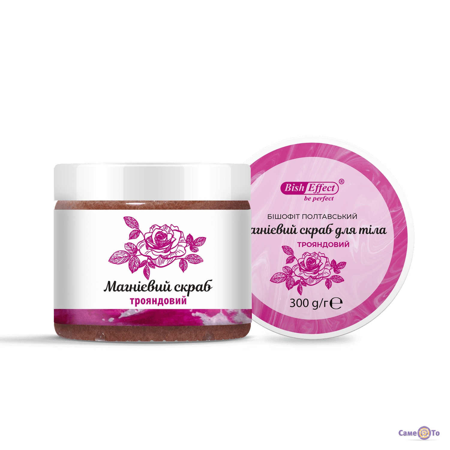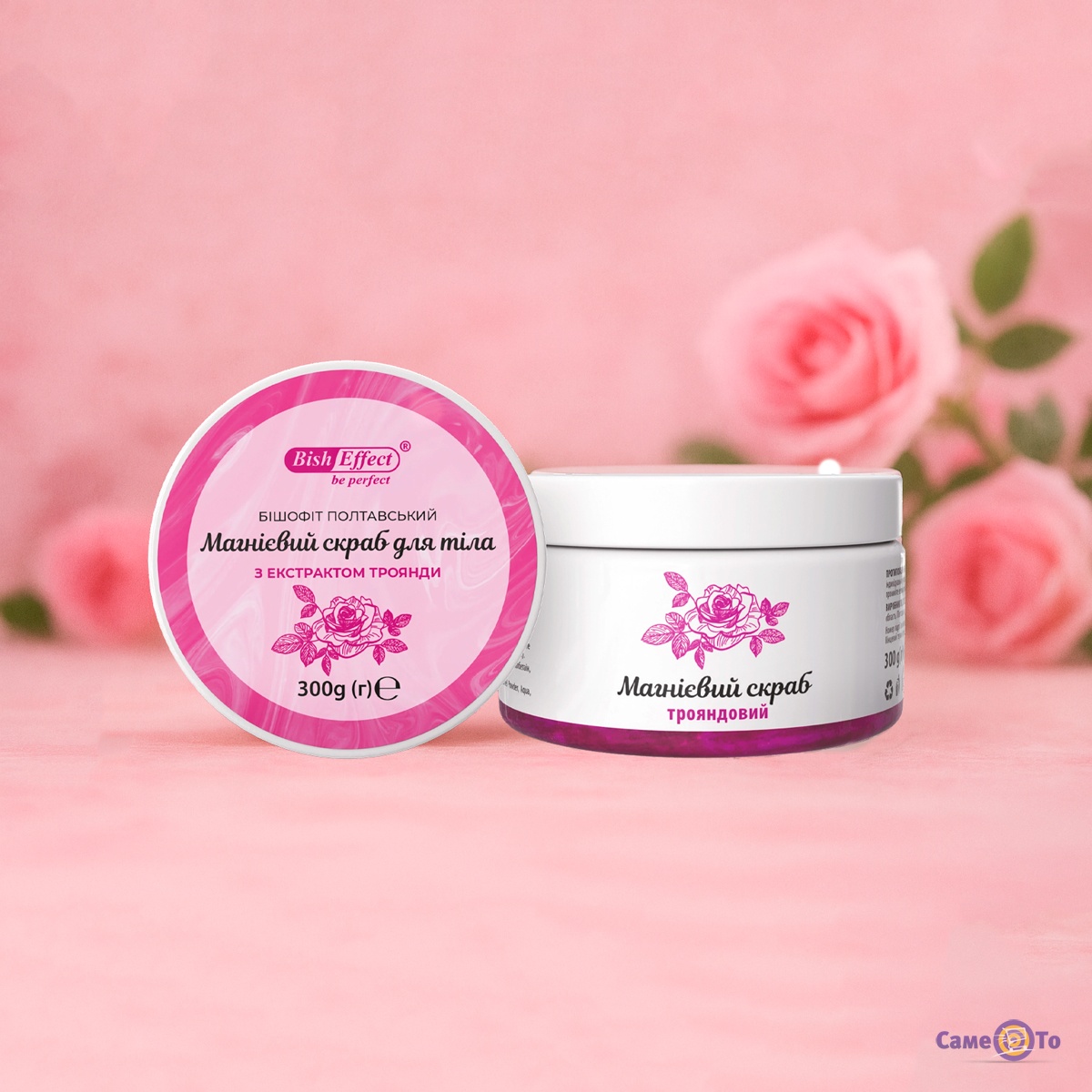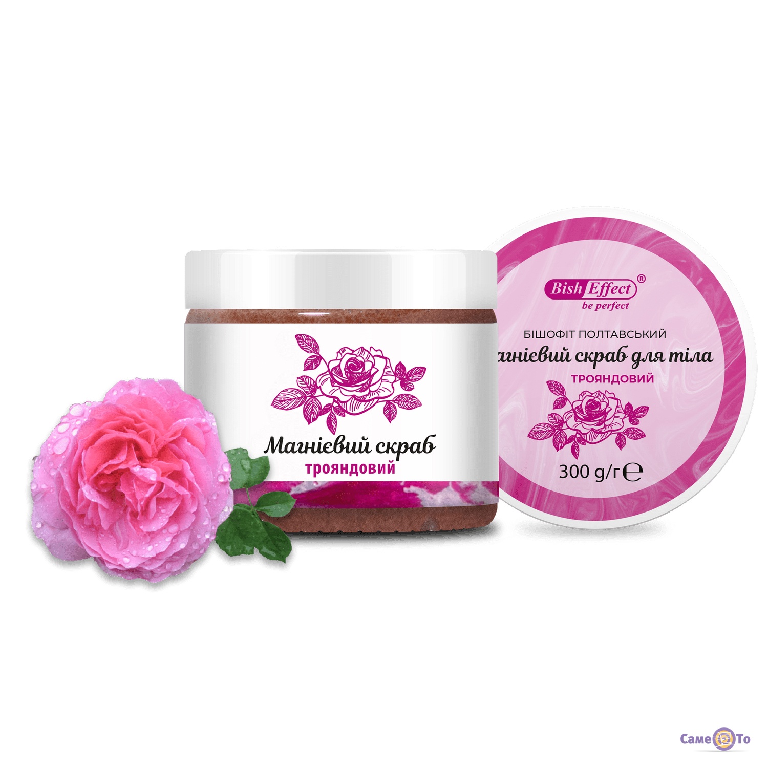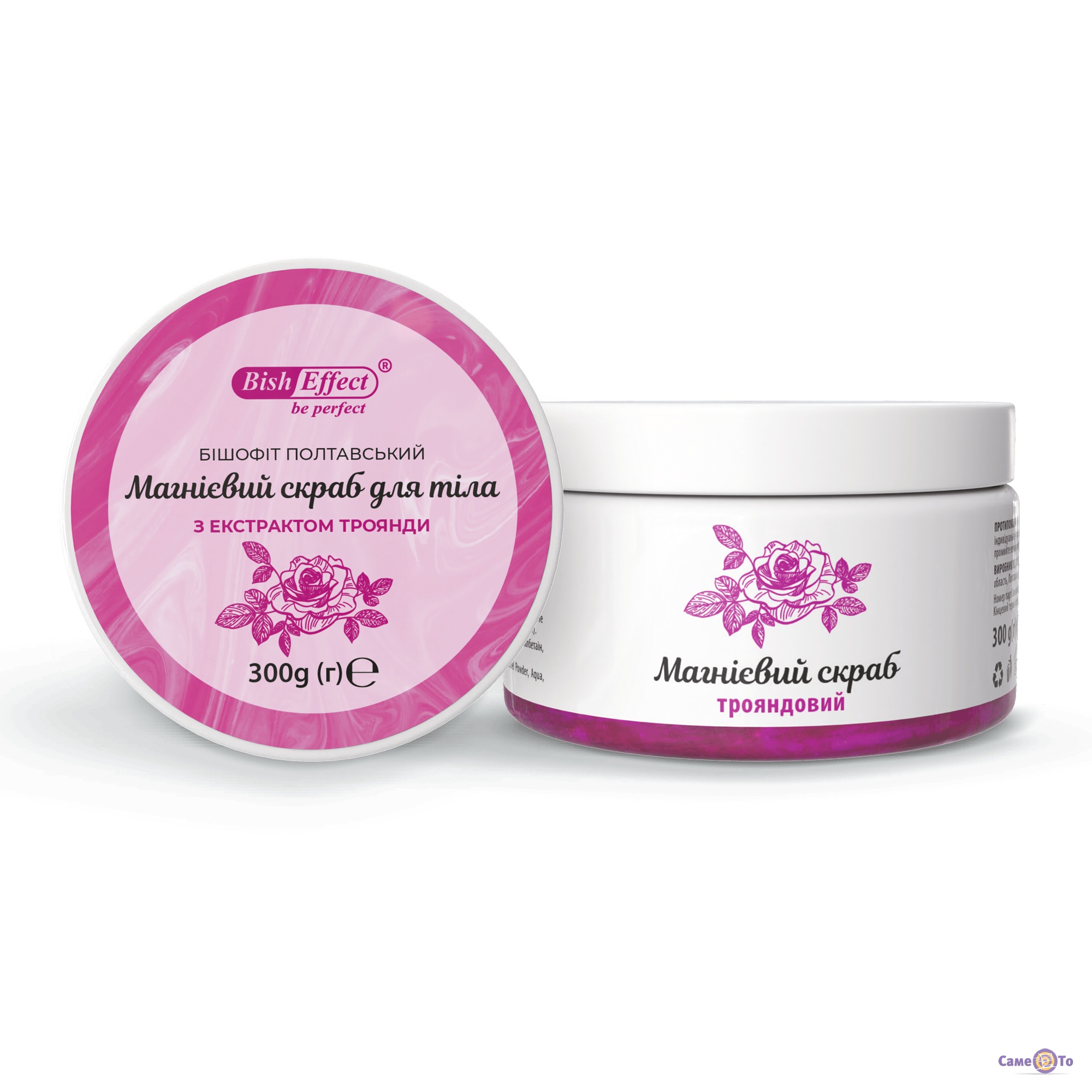 BishEffect - Магнієвий скраб для тіла з бішофітом Полтавським та екстрактом троянди, 300 г