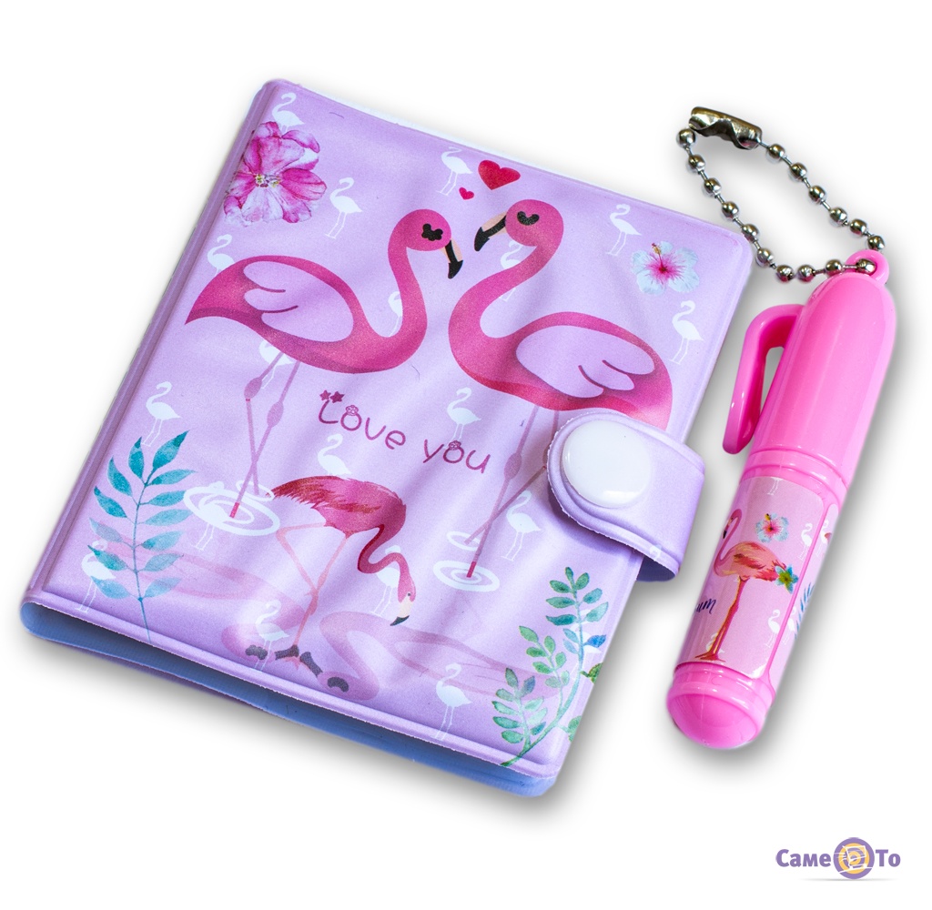 Блокнот для дівчинки виконано у красивому яскравому дизайні з малюнками фламінго на рожевому тлі. Це по-справжньому чарівний блокнотик для маленьких принцес.