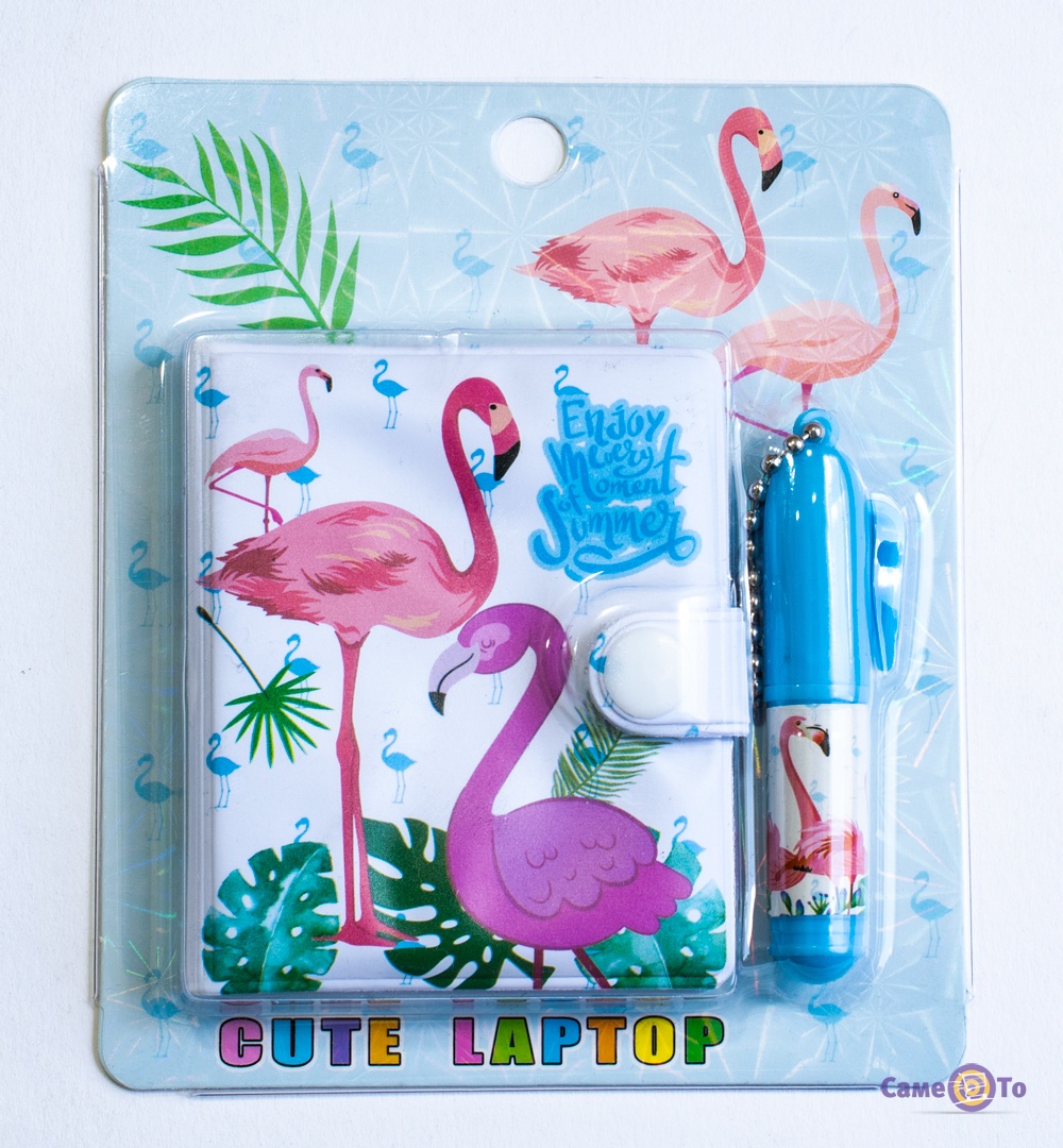 Дитячий блокнот, який привертає увагу яскравим та барвистим дизайном з малюнками рожевих фламінго на блакитному тлі. Він безумовно стане хорошим подарунком для маленьких принцес.