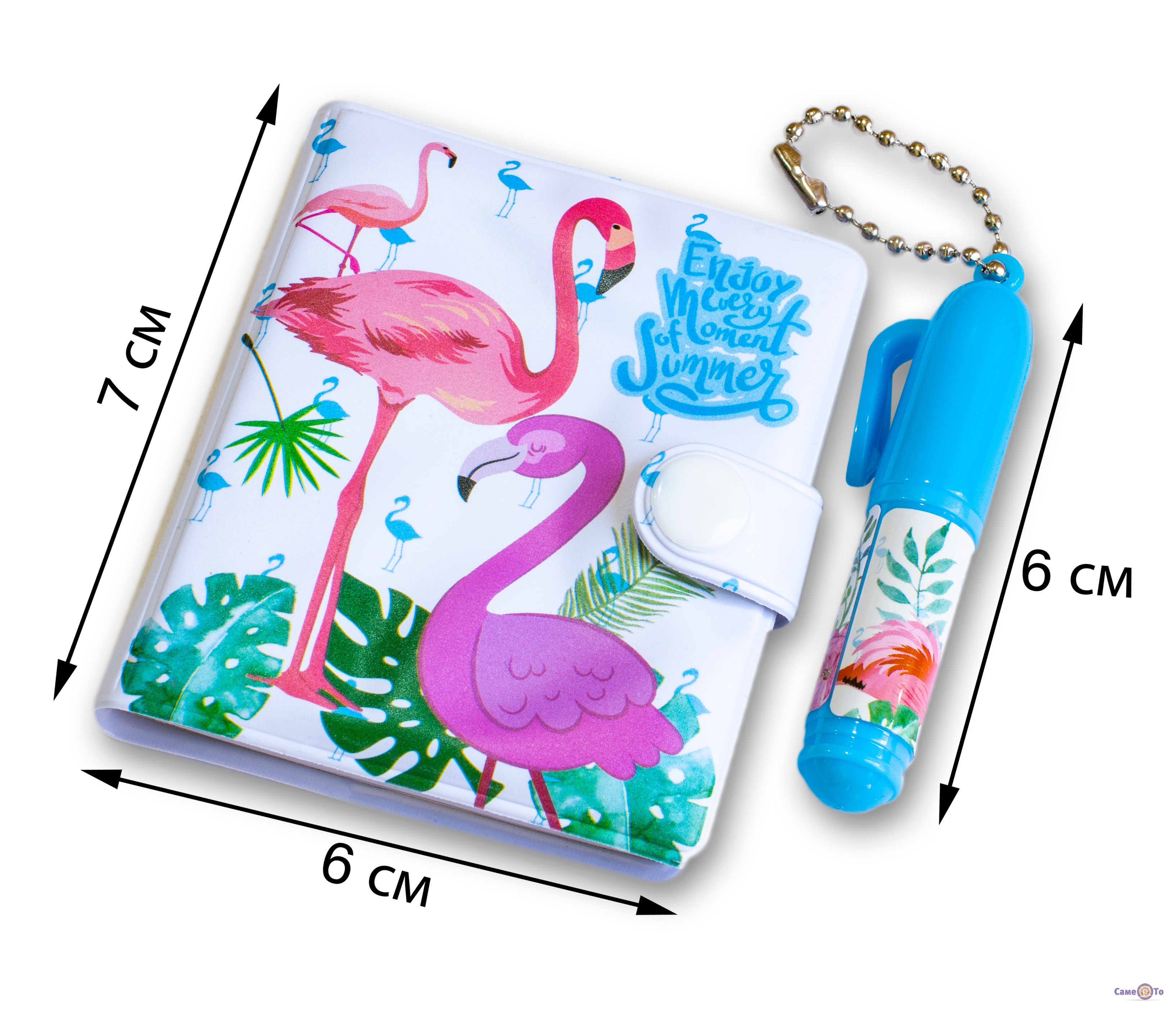 Блокнот має міцну пластикову обкладинку, яка має водонепроникні властивості. Закривається він за допомогою зручної кнопки. У комплекті передбачена ручка на ланцюжку, яку легко прикріплювати до блокнота. Всередині є 40 листів білого кольору з рядками. Упакований блокнот дитячий в барвистий блістер.