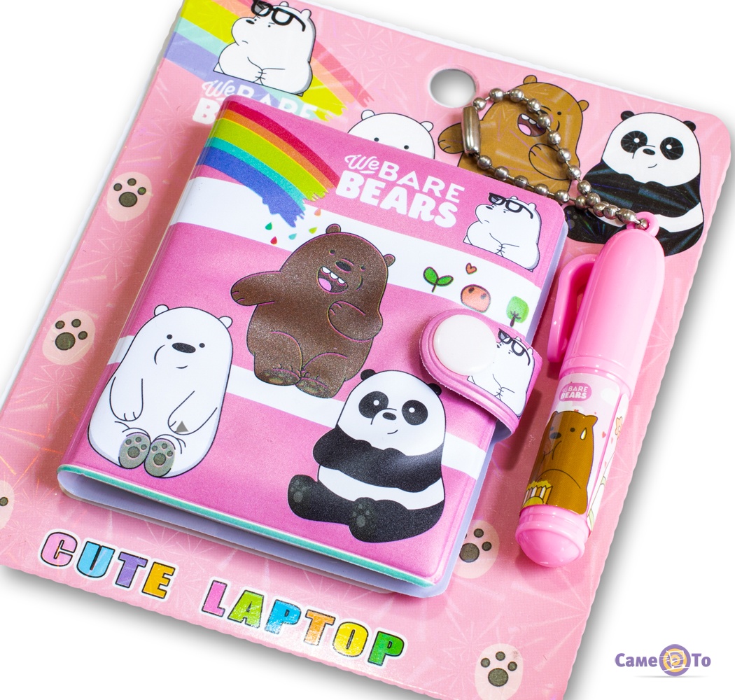 Дитячий блокнот оформлений красивим яскравим принтом з рожевим фоном і малюнком трьох кумедних ведмедів. Він привертає погляд своєю барвистістю та оригінальністю. Підійде в якості подарунка для маленьких принцес.