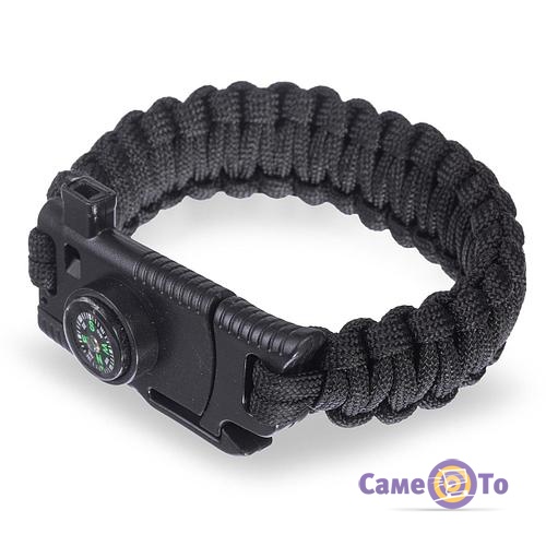 Это браслет выживальщика, который станет незаменимым для любителей путешествовать, для рыбаков или туристов. Он также порадует тех, кто любит стильные вещи. Он достаточно миниатюрный, но при этом многофункциональный. Паракорд-материал, из которого изготовлен браслет считается весьмя легким, но при этом очень прочным и надежным. Он способен выдержать абсолютно любые нагрузки. В таком браслете присутствует небольшой стальной клинок. Лезвие в нем достаточно острое, не требует частой заточки. Встроенный нож оснащен специальными насечками, подходящими для огнива. Также паракорд браслет имеет в комплекте оригинальный миниатюрный свисток и удобный компас.
