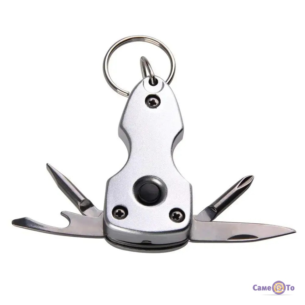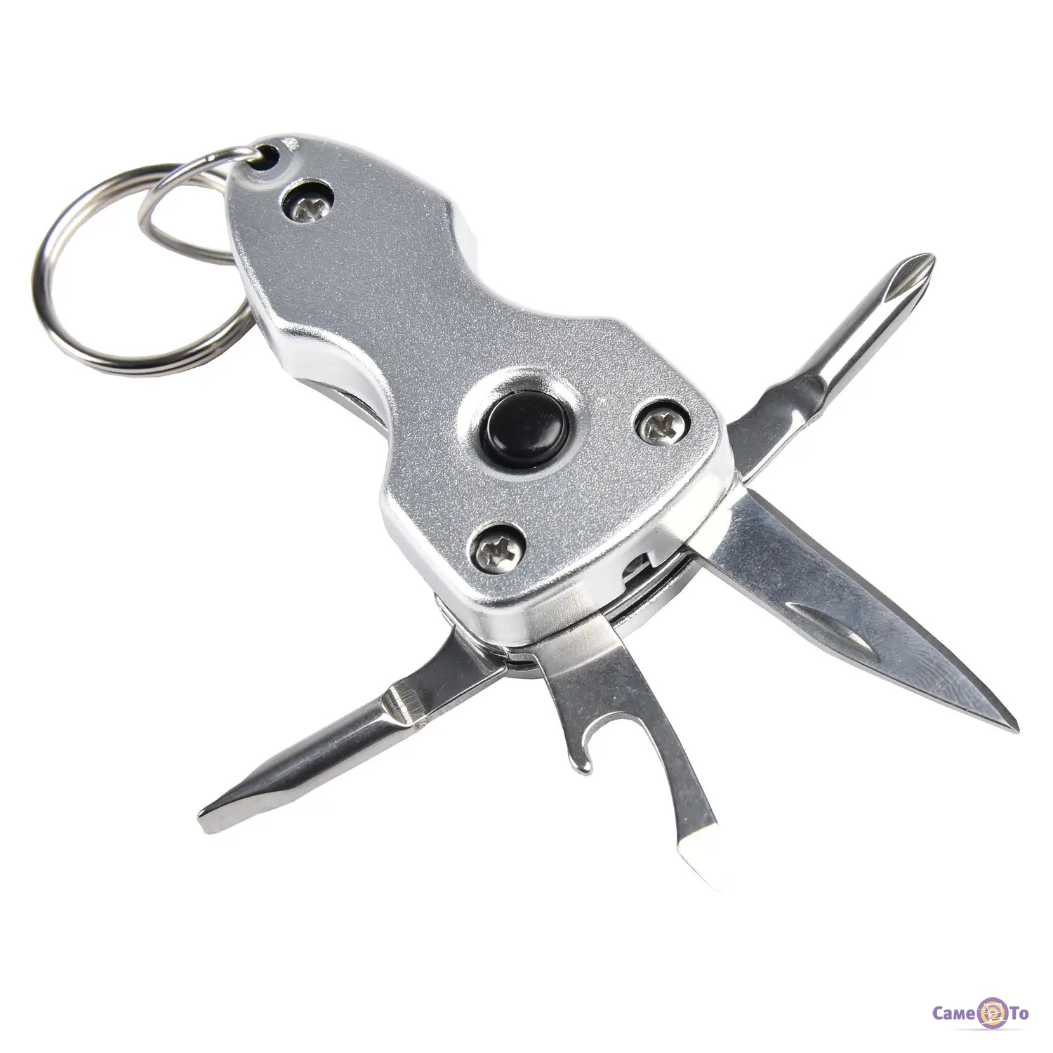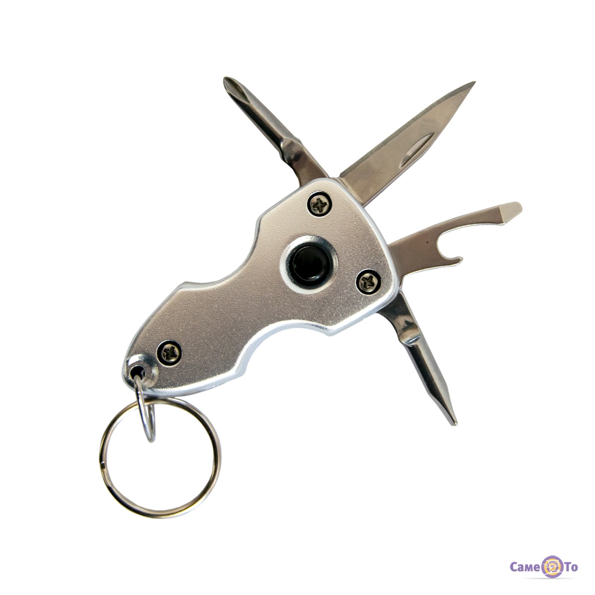 Брелок мультитул має 6 важливих функцій, які стануть у нагоді в різних ситуаціях. До його складу входять відкривачка для пляшок, ніж, викрутка, ліхтарик та кільце для кріплення. Цей інноваційний підхід до дизайну забезпечує максимальну універсальність та зручність у повсякденному житті.