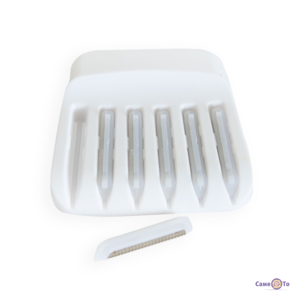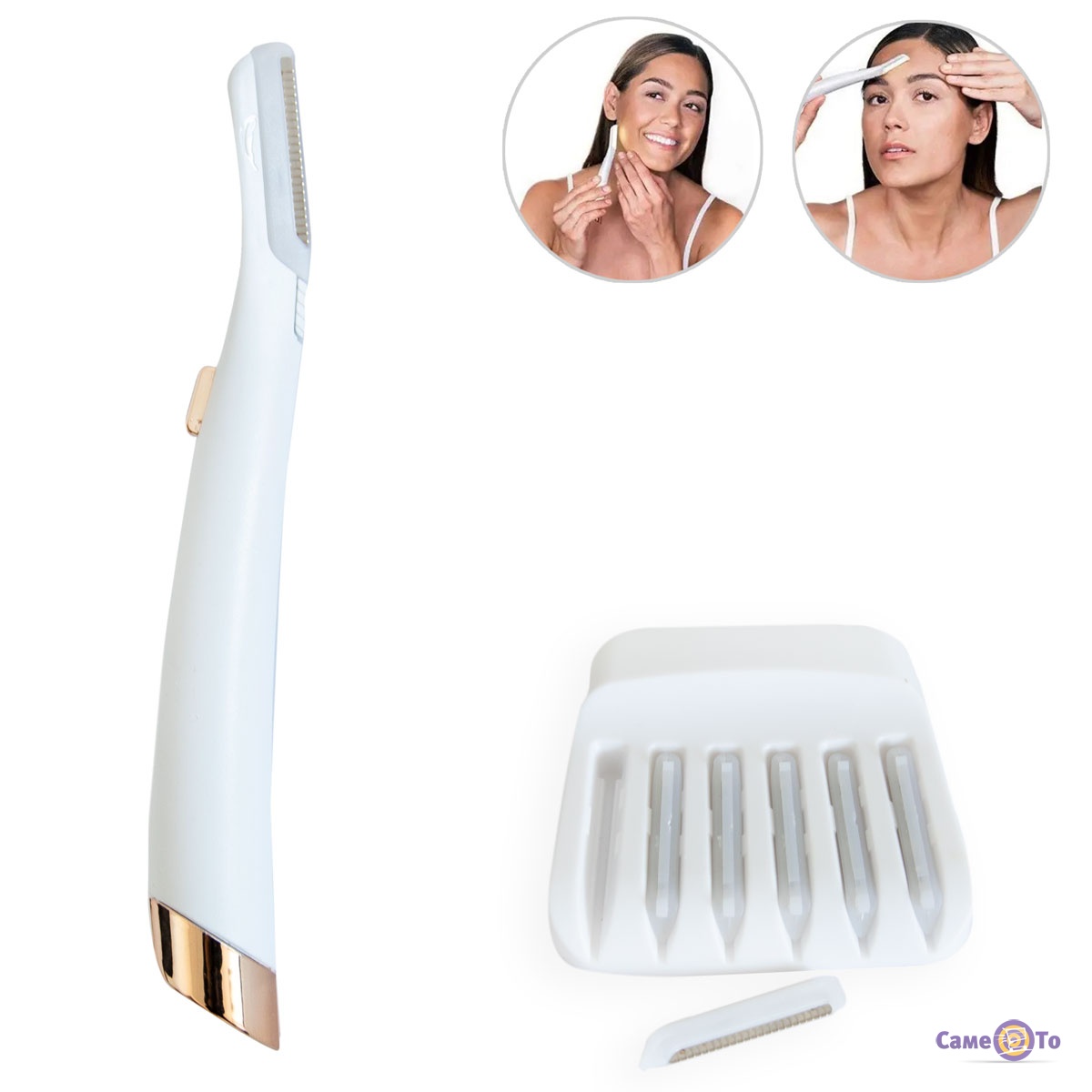 Жіноча бритва виконана з японської нержавіючої сталі, також вона має захисний пластиковий кожух. Бритва для жінок використовується не тільки для усунення зайвих волосків, але і відмінно видаляє ороговілу шкіру обличчя. Прилад допомагає зробити шкіру неймовірно гладкою та рівною. Бритву можна застосовувати для проведення вологої епіляції, також пристрій легко промивається.