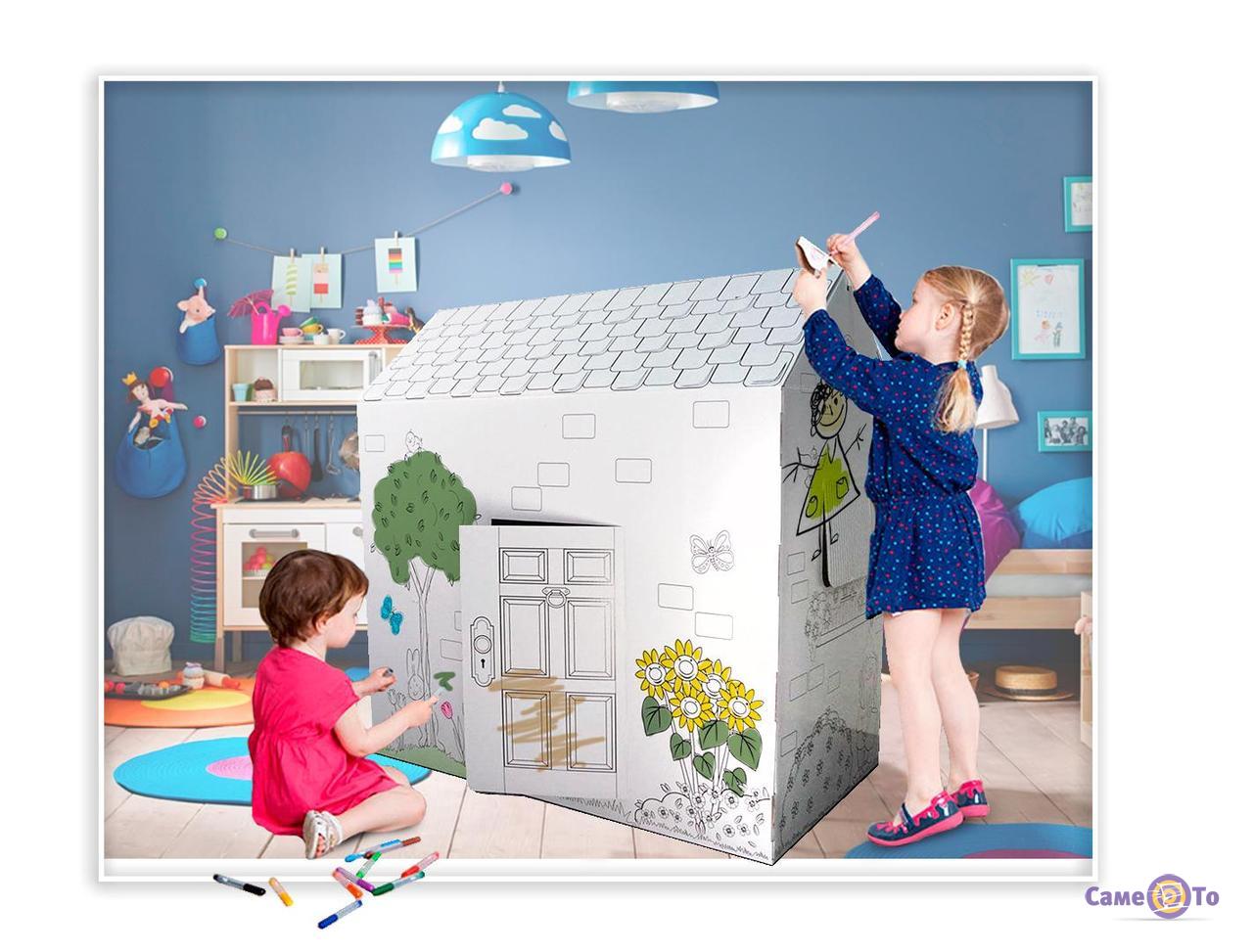 Не секрет, що творчі діти люблять возитися з розмальовками, за допомогою кольорових олівців, фарб, фломастерів і ручок. Але дитяче малювання пов'язано з безліччю неприємностей. А що якщо вручити маленькому витівнику незрівнянну триметрову розмальовку, яка після розмальовування перетворюється в чудову іграшку? Тепер дитина зможе побувати в ролі справжнього будівельника, збираючи дитячий картонний будиночок за інструкцією, а потім ще і дизайнера - розфарбувавши його на свій смак. На самому будиночку розташовані контури, які допоможуть малюкові впоратися з поставленим завданням.