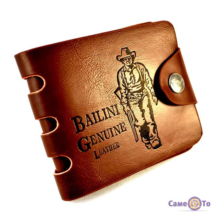 Чоловіче портмоне Bailini Genuine Leather виготовлено зі штучної шкіри. З роками, шкіра набуває особливий вигляд за рахунок появи деякої потертості, що і надає виробу ексклюзивність і елегантність, тим більше в поєднанні з дизайном в старовинному ковбойському стилі.