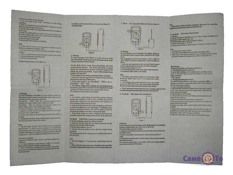 За допомогою даного апарату можна виконати вимір напруги, постійного струму, опору, перевірити функціональність діодів або протестувати батареї. Корпус цього приладу - міцний пластик, що свідчить про його довговічність і надійність. Також, даний прилад має зручний цифровий екран з підсвічуванням і функцією автоматичного вимкнення підсвічування через 10 секунд, для економії заряду батареї.