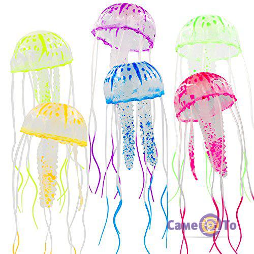 Штучні медузи для акваріума зроблені з прозорої гуми, з додаванням яскравих фарб з люмінесцентним ефектом, які надзвичайно красиво переливаються в променях актинічного освітлення. Всі матеріали екологічно безпечні - не містять шкідливих для здоров'я акваріумних мешканців речовин. За зовнішнім виглядом штучні медузи абсолютно ідентичні прототипам. За рахунок використання м'якого матеріалу, вони і рухаються у воді як справжні: краю шапки і щупальця легко, ледве помітно, колихаються під дією потоку води. Щоб ефект руху медузи був максимально реалістичним, краще поміщати їх у зони, де потік води від дії компресора сильніший.