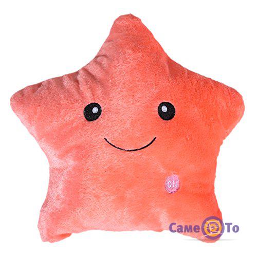 М'яка диванна подушечка у формі милої усміхненої зірочки стане не тільки стильним і витонченим аксесуаром, що підкреслює домашній затишок, але і буде виконувати роль нічничка для дитячої кімнати або спальні. Подушка Зірка може переливатися м'яким теплим світлом, плавно змінюючи колірну гамму в усіх райдужних барвах.