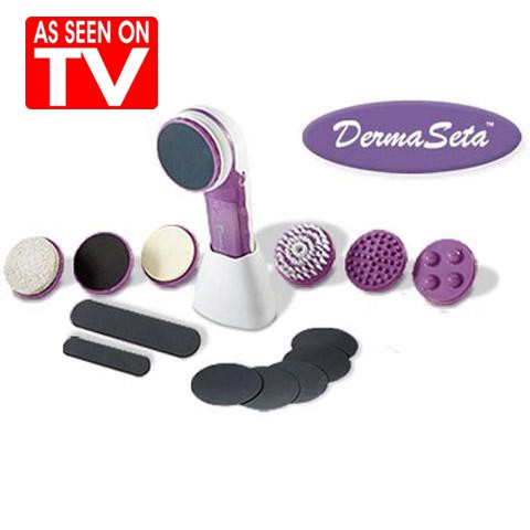 Згадайте скільки складнощів Вам і Вашій шкірі доставляли процедури епіляції і депіляції. Подібно кошмару шкіра лущиться, втрачає еластичність і свій здоровий вигляд в цілому. Вам більше не доведеться цього терпіти, якщо Ви придаєте ультра-новий пристрій Дерма сета! Цей прилад абсолютно універсальний, оскільки він виконує безліч функцій одночасно: це і дбайлива депіляція, і легкий масаж, і навіть полірування загрубілої шкіри.