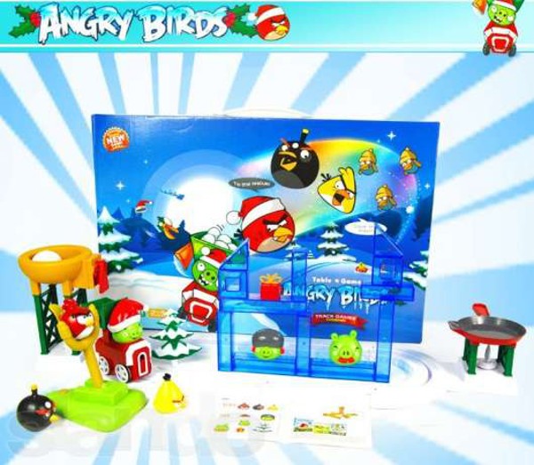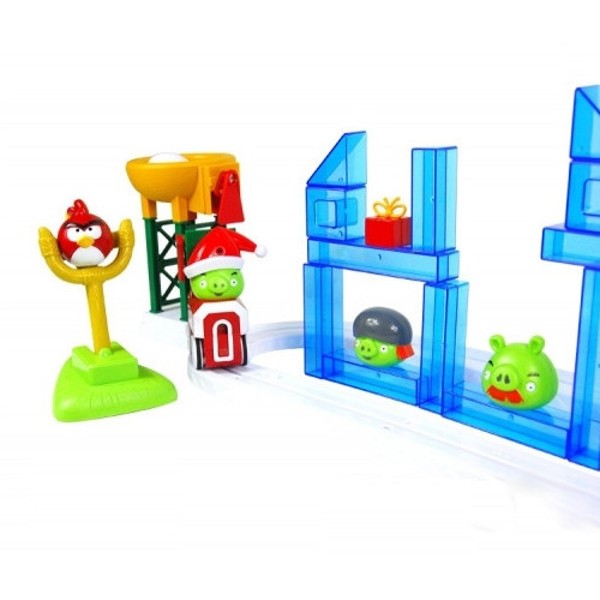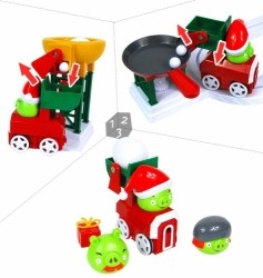 За мотивами гри злі свинки крадуть з гнізд пташок яйця, коли проїжджають повз них на поїзді. Дитина повинна не дати свинкам вкрасти яйця, збиваючи їх з ігрового поля за допомогою запускання пташок з музичної катапульти. Всі дії героїв і дії гравця озвучуються, так само як і в комп'ютерній версії, що робить забаву веселіше і дуже захоплює. Дитяча гра Аngry birds даної моделі особлива тим, що дитина зможе вибудовувати рівні складності самостійно, по-різному встановлюючи на поле блоки для фортеці, які є перешкодою для польоту пташки.