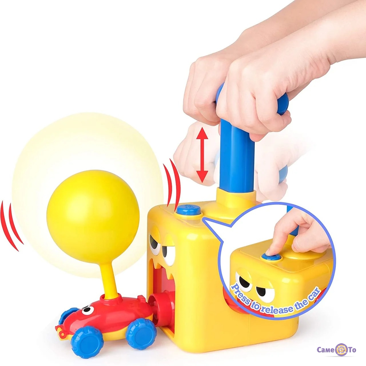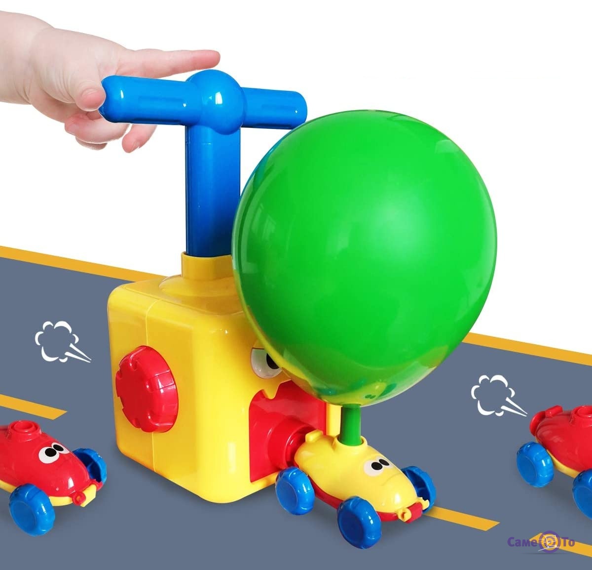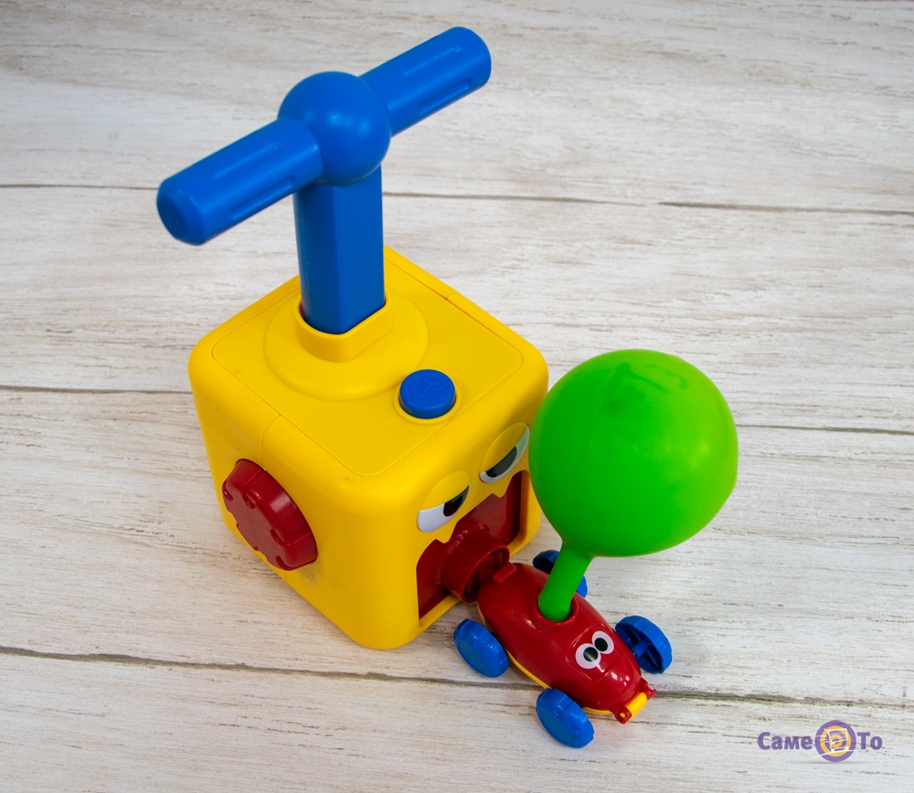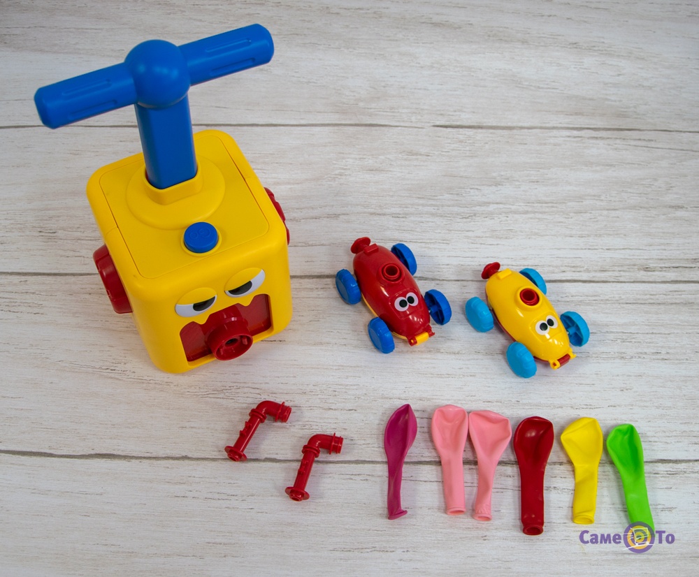 Гонки для детей рассчитаны на двух игроков, но можно купить еще комплект, и веселья будет больше. В комплект гонки для детей входит еще пусковая вышка, которые необходима для накачки и может использоваться даже маленькими детьми. Для начала игры, в машинку нужно вставить специальный шарик, подсоединить насос к машинке и накачать шарик. После чего можно смело запускать шарик вперед и наблюдать, как он будет катиться.