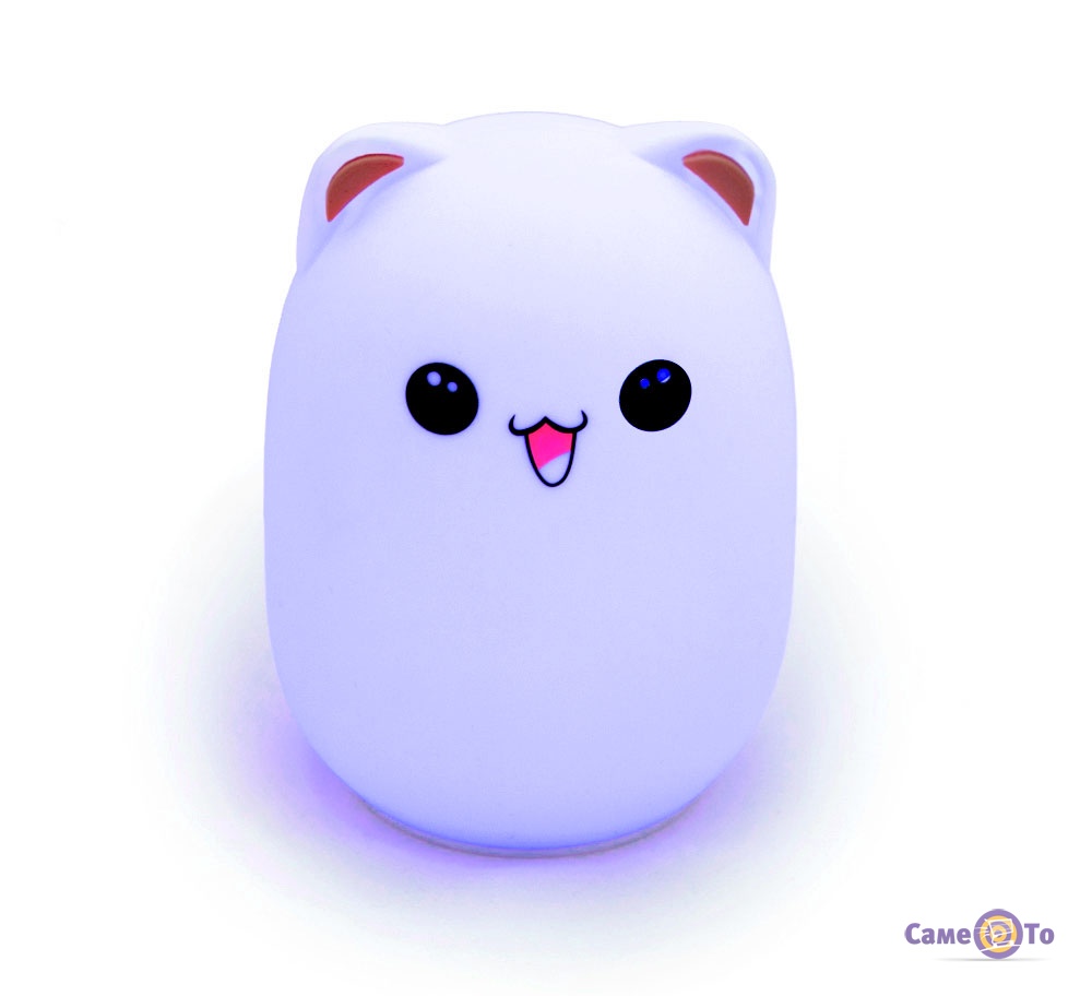Силіконовий світильник "Кішечка" - це цікавий і оригінальний нічник, здатний прикрасити будь-який інтер'єр будинку і особливо дитячої спальні. Приглушене світло ідеально підійде для дитини, подарує йому спокій і відпочинок. Нічник дитячий можна залишати навіть на ніч, при якій дитина буде спокійно спати і не боятися страшних снів. Нічник дитячий має 4 режими роботи: включення, виключення, зміна кольору (має такі кольори, які змінює між собою їх по колу: фіолетовий, синій, блакитний, жовтий, червоний, помаранчевий, зелений), є режим також постійного світіння. Вмикається і вимикається, а також змінює режими нічник дитячий за допомогою звичайних ударів. З чим спокійно зможе впоратися будь-яка дитина. Зарядити пристрій можна від звичайного USB кабелю, який йде в комплекті. Завдяки цьому нічник можна спокійно переміщати по кімнаті на зручне для вас місце. Такий прилад вважають дуже надійним і безпечним. Підійде як подарунок будь-якій дитині.