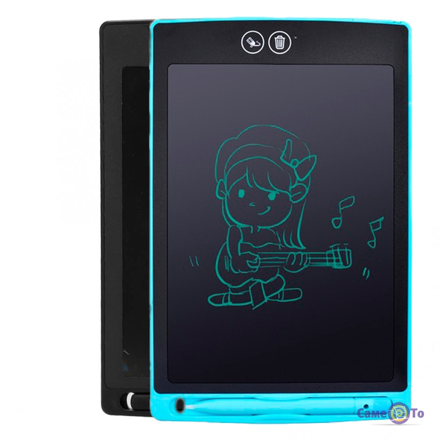 Характеристики LCD планшет для малювання 8.5 ": корпус гаджета виконаний з пластика, розмір екрану 8,5 дюймів. Є функція стирання і збереження від випадкового стирання, є ластик на зворотному кінці стилуса. Елементи живлення: 1 батарейка типу CR2016.