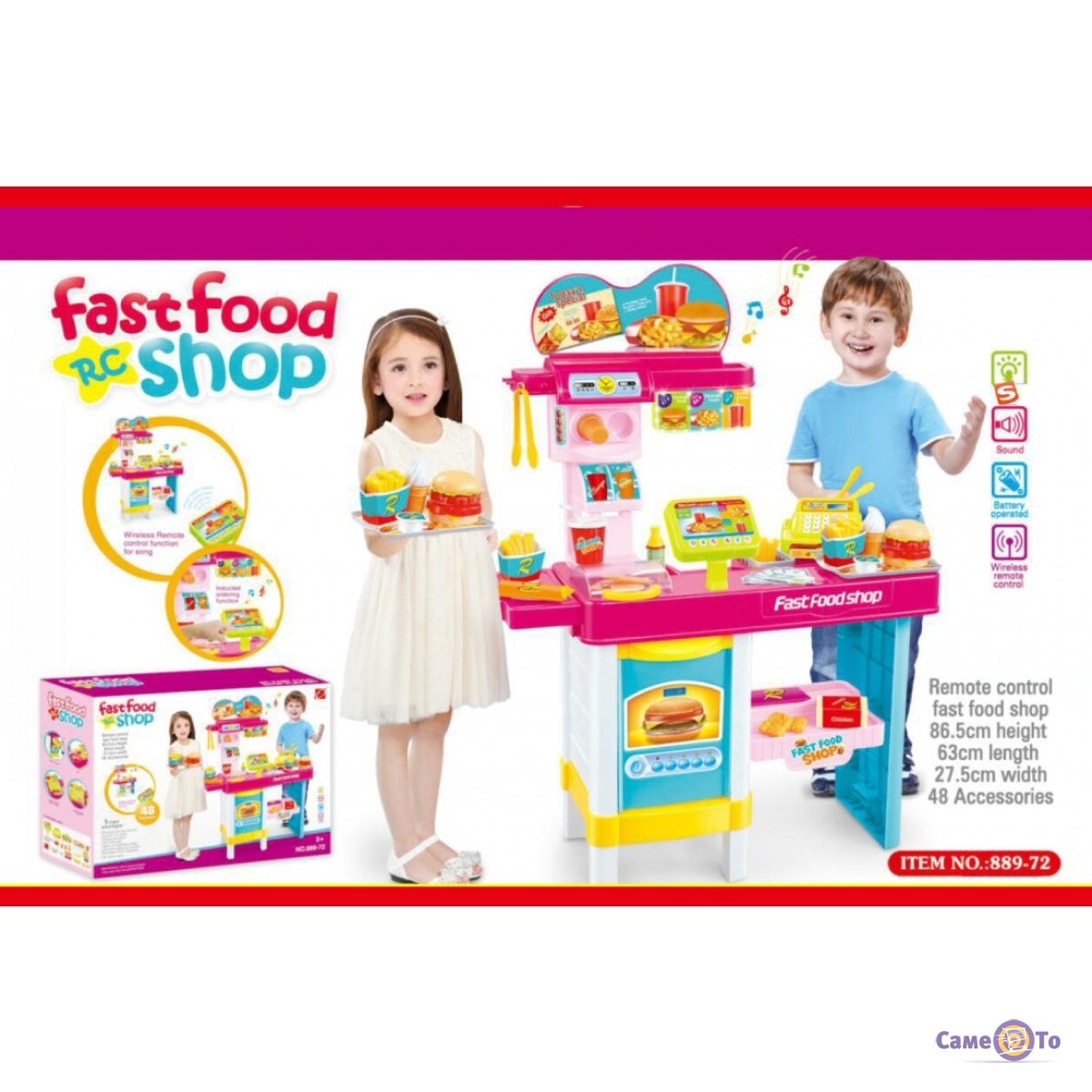 • В комплекте: прилавок, кассовый аппарат, продукты, пульт и прочие аксессуары (детальнее см. фото).