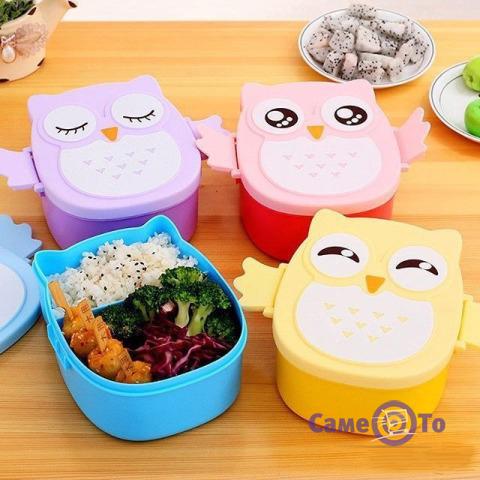 Пропонуємо Вашій увазі зручний дитячий ланчбокс Сова для їжі, який можна використовувати як контейнер для їжі, щоб забезпечити дитину повноцінним обідом під час перебування в навчальному закладі. Даний ланчбокс не тільки зручний, але ще і красивий. Його яскравий дизайн обов'язково радує діток і підсилює їх апетит, адже їсти з подібною посуду - суцільне задоволення для них. Виріб виконаний у вигляді неординарної і яскравої сови з абсолютно безпечного кухонного екопластику. А ще він доповнений красивою кришкою з засувками в формі крилець сови, що додатково захистять рюкзак Вашого школяра від витікання їжі і неприємних конфузів із забрудненням підручників і зошитів.