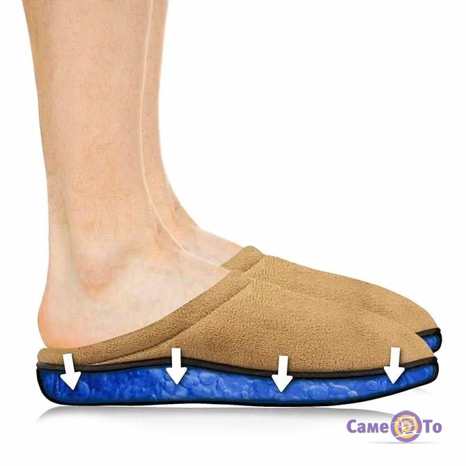 Зовні це звичайні домашні капці, але насправді це не так. Секрет полягає в устілці, в якій розташований спеціальний гель-піна, що діє як амортизатор. Під час ходьби ви будете відчувати комфорт і легкість, адже дані кімнатні капці зменшують навантаження не тільки на ноги і ступні, а й на колінні суглоби і навіть на поперековий відділ.