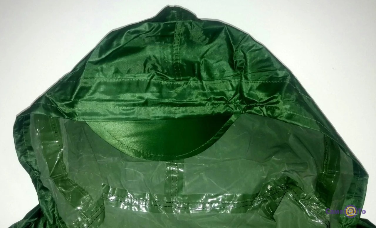 Додатковий захист передбачена завдяки блискавки, яка закривається клапаном на кнопках. Якщо вам потрібно довго йти під дощем, немає ніякого ризику застудитися і завдяки великому каптура, який при натягуванні дає козирок. Це захищає обличчя і очі від попадання крапель. В результаті ви отримуєте максимально можливий огляд, чи не розмитий дощем. У комплекті з виробом йде чохол, що дозволяє зберігати плащ в той час, коли він не потрібен.