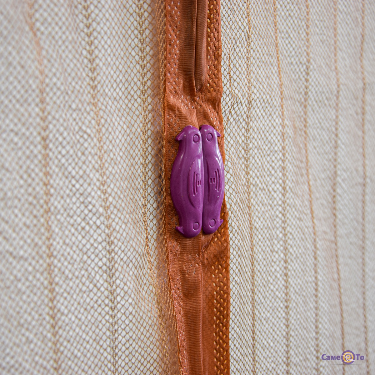 Якщо ви втомилися боротися з комахами в жарку пору року, вам необхідно подбати про те, щоб захистити свій будинок і комахи просто не залітали до вас. Протимоскітна сітка підходить як для звичайних дверей, так і для розсувних дверей, може застосовуватися для фургонів, наметів чи для дачних сарайчиків. Сітка антимоскітна продається в таких кольорах: фіолетовий, коричневий, чорний, сірий, зелений. Виготовлена ​​з матеріалу поліестер. Розміри сітки на балкон вказані на самій упаковці, а саме: 210х120 см. У наборі з москітною сіткою на двері доставляються кнопки для кріплення та інструкція для використання. Все упаковано в зручну упаковку для зберігання при необхідності. Протимоскітна сітка має по 7 вбудованих потужних магнітів з одного боку стулки.