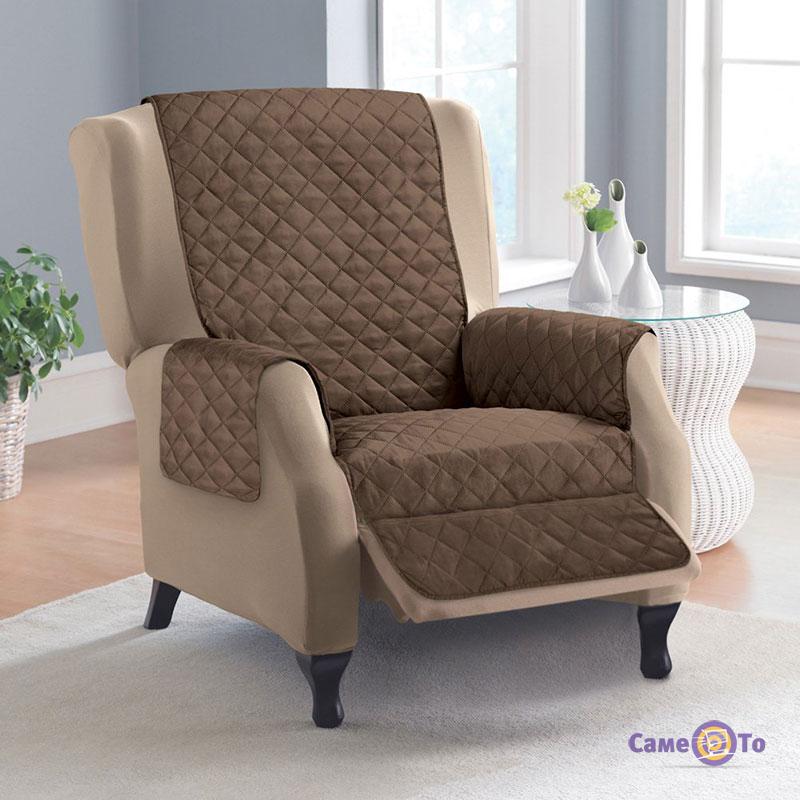 Двостороннє стьобане покривало - накидка на крісло Couch Coat 155х46 см (Коричнева)