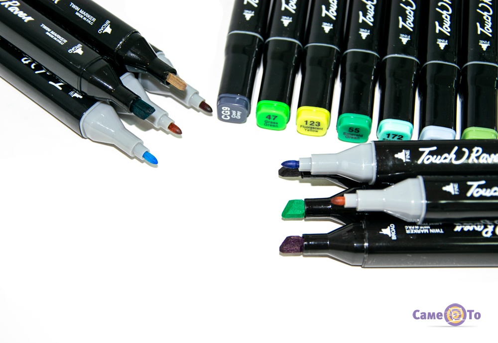Виготовлені маркери в пластмасовому корпусі, які дуже зручно тримати в руці при створенні малюнка. Ковпачки фломастерів добре закриваються, тим самим не пересихають і не псуються прі не користуванні ними. Для зручності визначення типу пера кінці маркерів пофарбовані різним кольором. Кожен окремий фломастер містить особистий цифровий код, який нанесений на ковпачок виробу. Чорнило зроблене на спиртовій основі, за рахунок цього відмінно вбираються в папір, не залишаючи при цьому незрозумілих плям. Іноді під білий аркуш паперу можна підкладати щільний картон, щоб малюнок здавався більш чітким і яскравим. Кольори можна змішувати між собою, перехід кольорів красивий. Купити фломастери для малювання можна в якості подарунка як дитині, так і дорослому. Такий незвичайний набір зможе подарувати незвичайні враження і емоції від створення яскравих малюнків.