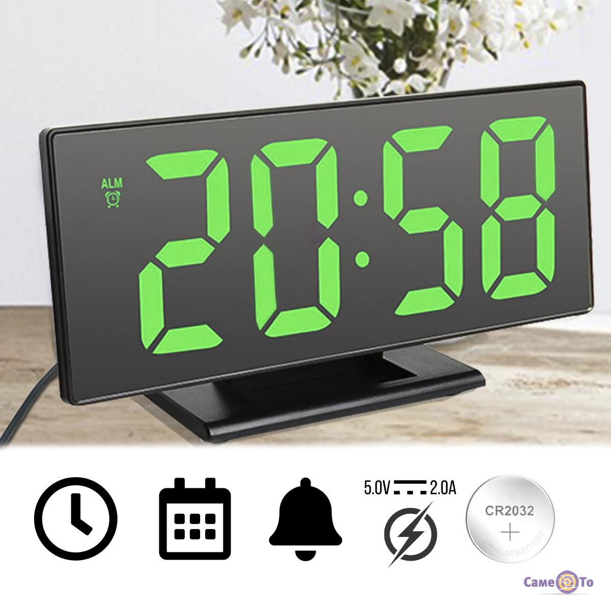 Часы настольные электронные 3618L (Зеленая подсветка) зеркальные LED часы с термометром