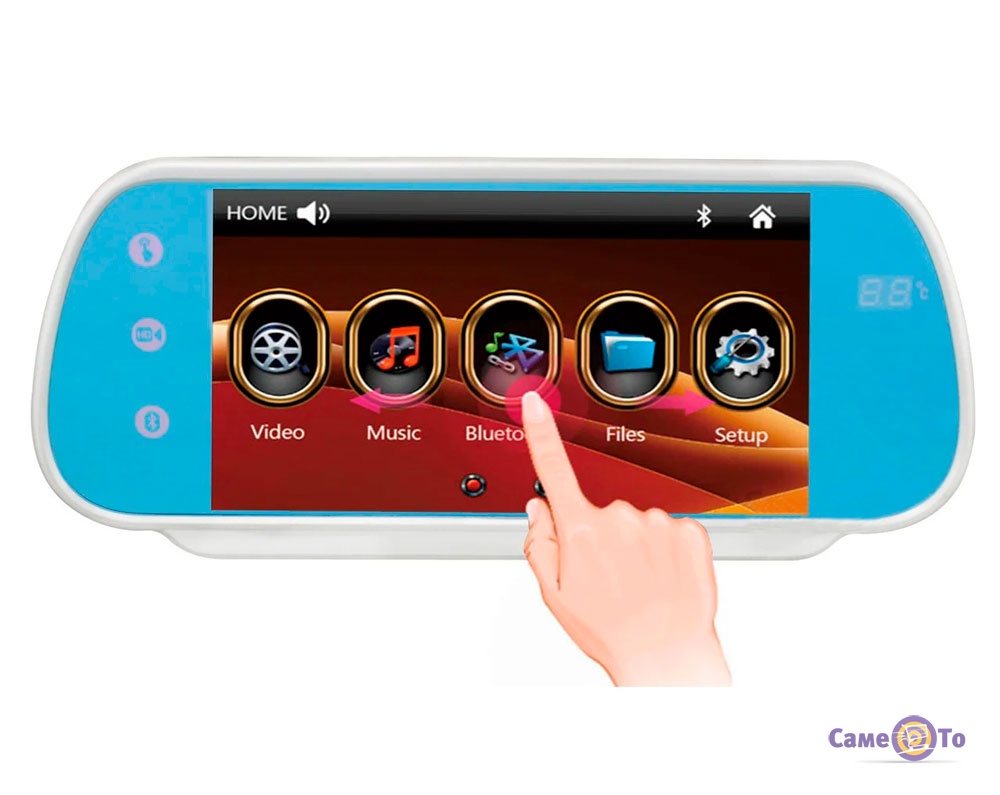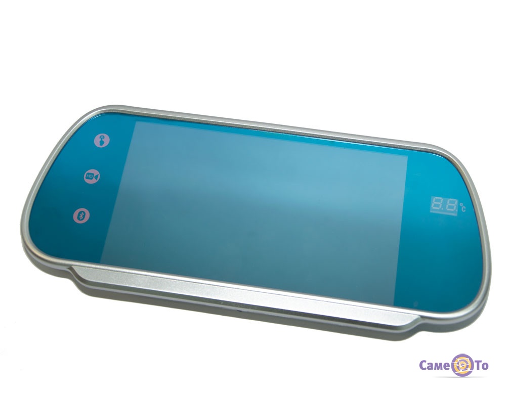 Дзеркало заднього виду з монітором дуже легко кріпиться на дзеркало будь-якого автомобіля. Має якісне антивідблискне покриття і функцію відключення дисплея, якщо у вас працює реєстратор. Дуже зручно те, що всі кнопки з управління приладом перебувають на передній частині пристрою. Живити монітор для камери дуже легко від прикурювача автомобіля завдяки кабелю підзарядки, який йде в комплекті з самим пристроєм. Прилад не приваблює увагу інших за рахунок того, що кріпиться до штатного дзеркала. Дисплей на 7 дюймів дуже добре показує зображення і настройки приладу. У комплекті з монітором для камери поставляється пульт і дроти підключення.