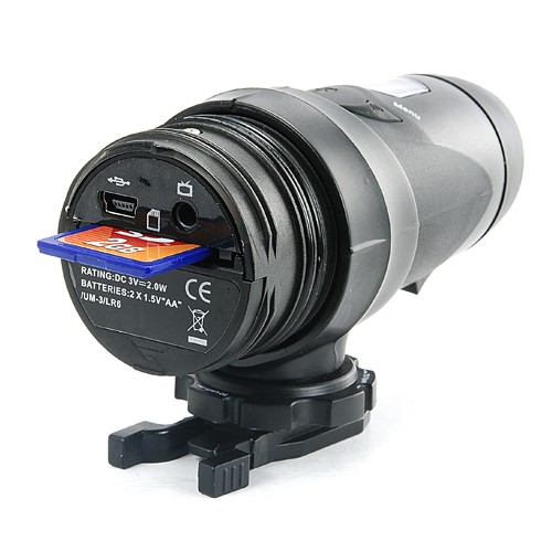 Эта модель оснащена матрицей 5,0 МР / CMOS. Данный регистратор способен записывать поразительно высокоскоростное видео. Причем с высоким качеством, и со скоростью записи 30 FPS. Одно из преимуществ комфортабельности это то, что камеру можно закрепить на шлеме, легко можно прикрепить ее на руль, на авто, и вообще на любые части тела. Это позволяет делать угол обзора камеры 120 градусов, а также в помощь вступает широкоугольный объектив (F 2.0, F = 3.4mm). Все это вам обеспечит четкое и качественное изображение при большой скорости.