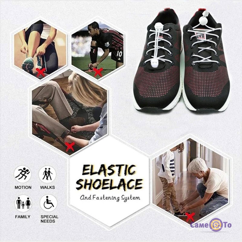 Шнурки, що самозатягуються, виконані з гуми високої якості, що забезпечує тривалий термін придатності виробу. Ліниві шнурки – це практичне рішення для всіх – дітей, дорослих та літніх людей. Аксесуар робить взуття більш комфортним та зручним, а також повністю знижує ризик невдалого падіння через довгі розв'язані шнурки.