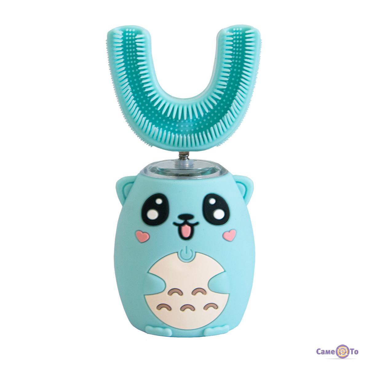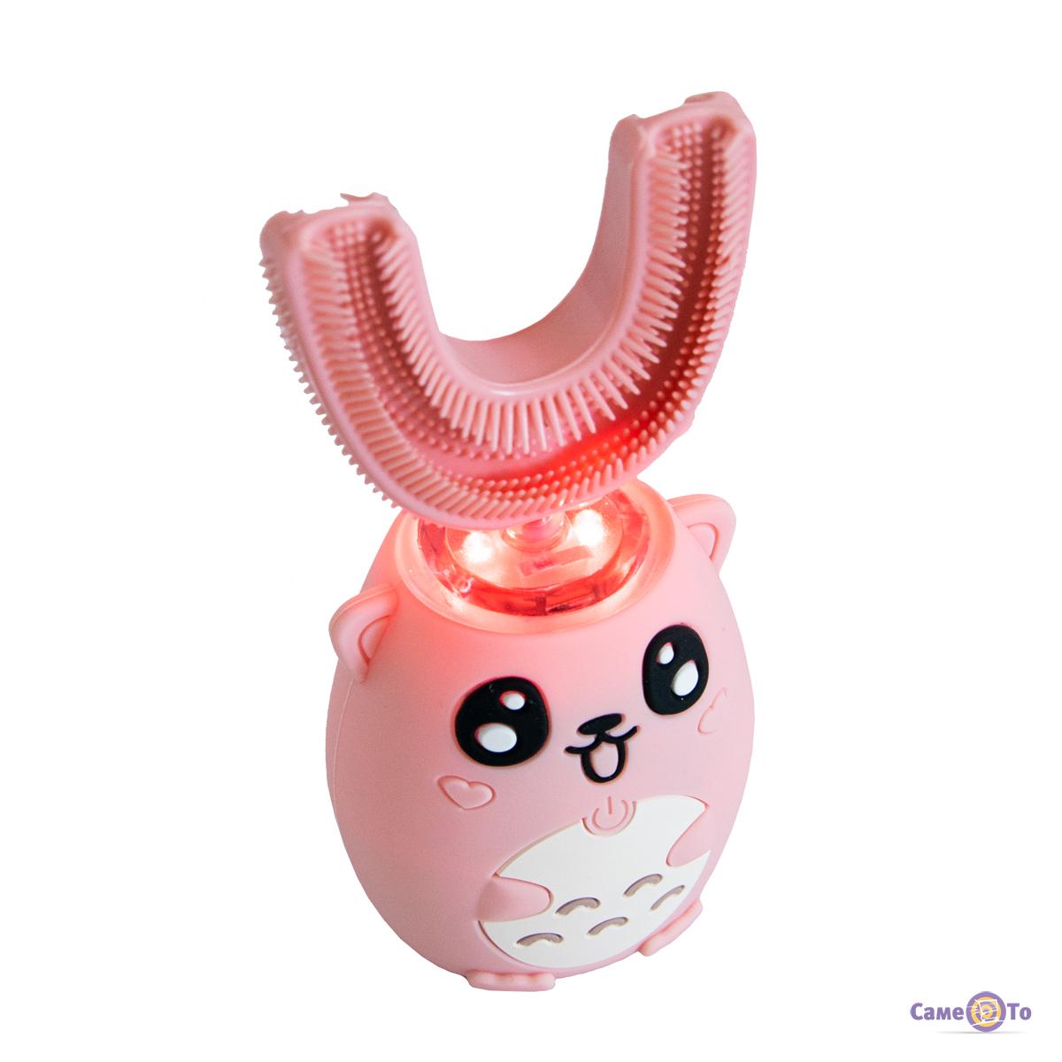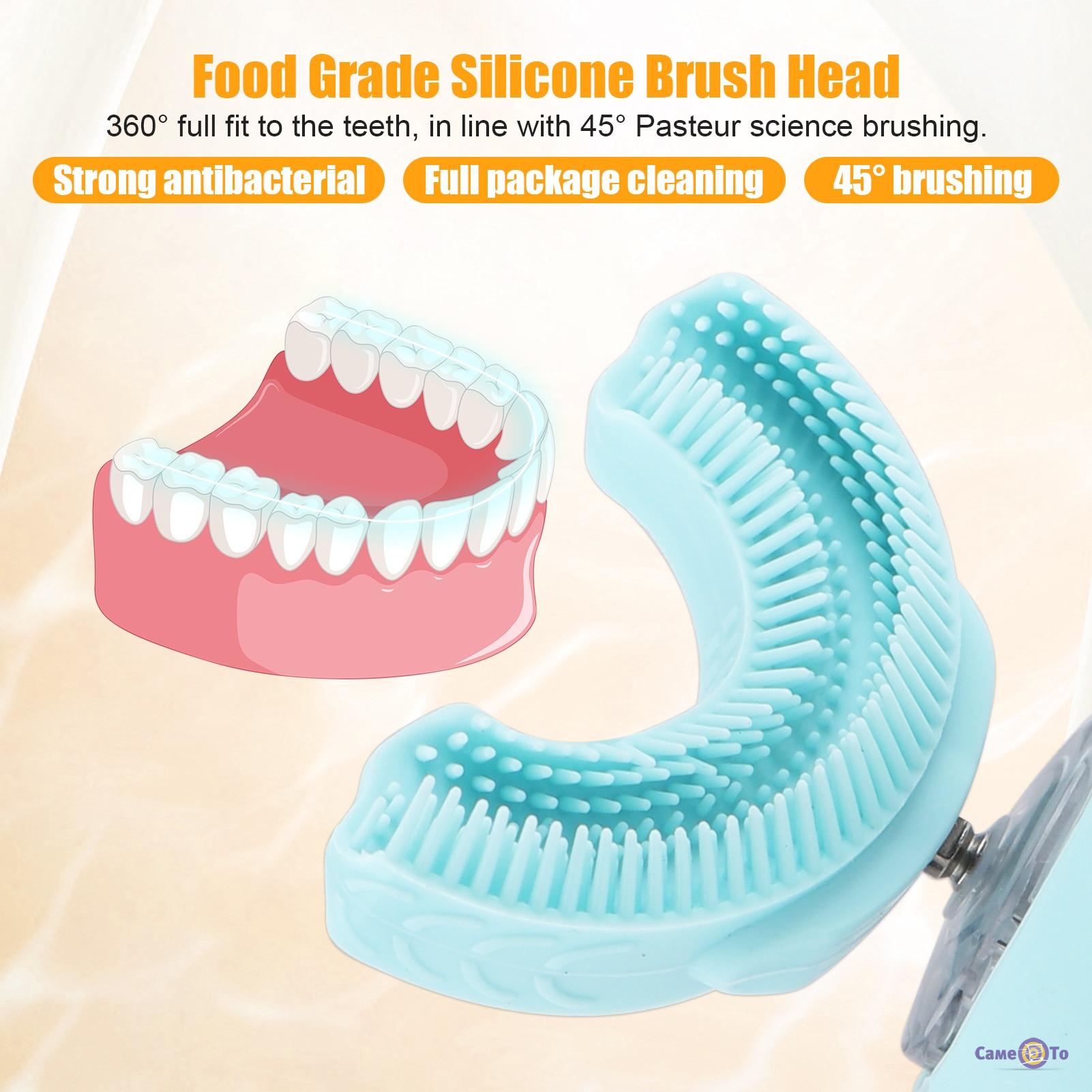 Ця електрощітка дитяча має U-подібну форму капи. Щетинки на її робочій поверхні м'які та щадні, вони ідеально підходять для дитячих зубів та ясен. Більше того, під час руху щетинок паста швидко спінюється.