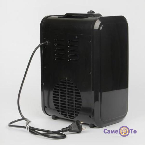 Камін не займає багато місця і легко може бути встановлений в будь-якій кімнаті Вашого будинку. А оскільки у прилада порівняно невеликі габарити, то він легко поміщається в багажнику легкового автомобіля, так що Ви можете брати його з собою на дачу. Ретельно продуманий дизайн каміна підходить для будь-якого приміщення, а штучне полум'я дуже схоже на справжнє. Нагрівання приміщення здійснюється за допомогою довговічних (термін служби до 10 років) керамічних нагрівальних елементів, які, на відміну від звичайних нагрівальних спіралей,не спалюють кисень і споживають майже в два рази менше електроенергії. Із зовнішнього боку електрокамін покритий чорним високоякісним пластиком, який з легкістю витримує високу температуру.