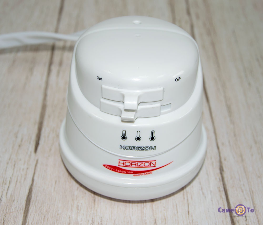 Електричний нагрівач води підключається до звичайного мережевого живлення за допомогою декількох невеликих дротів. Поверхня товару виготовлена з високоякісного пластику, стійкого до високих температур. На поверхні міні бойлера на кухню присутні зручні і прості регулювання, що дозволяє виставити потрібну температуру нагрівання рідини. У комплектації присутня душова ручка, яку ви зможете розмістити у ванній, а також великий шланг довжиною 2 метри. Також в комплект включений кронштейн для швидкого і надійного закріплення міні нагрівача води.