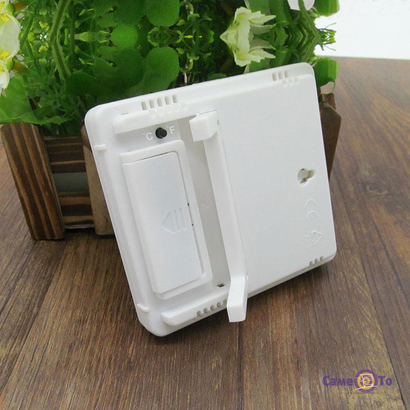 У цьому портативному приладі є кілька функцій для максимальної зручності його володарів: вимір температури, рівня вологості, а також годинник-будильник.