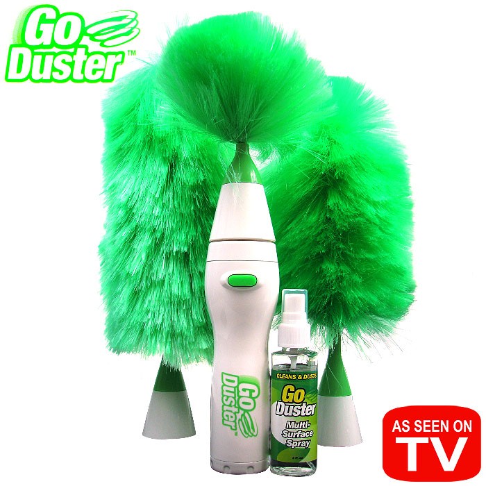 Нам давно відома маса засобів для прибирання: для миття підлоги, для замітання, для миття дзеркал і вікон. Але залишається незакритим питання про те, чим краще витирати пил; мити підлогу спочатку або після прибирання пилу; робити це вологою або сухою ганчіркою. Це питання відпаде саме собою, якщо у Вас є мітелка GoDuster! Цей унікальний прилад дозволить видалити пил навіть із самих крихких ваз, келихів, картин і навіть сервізів.