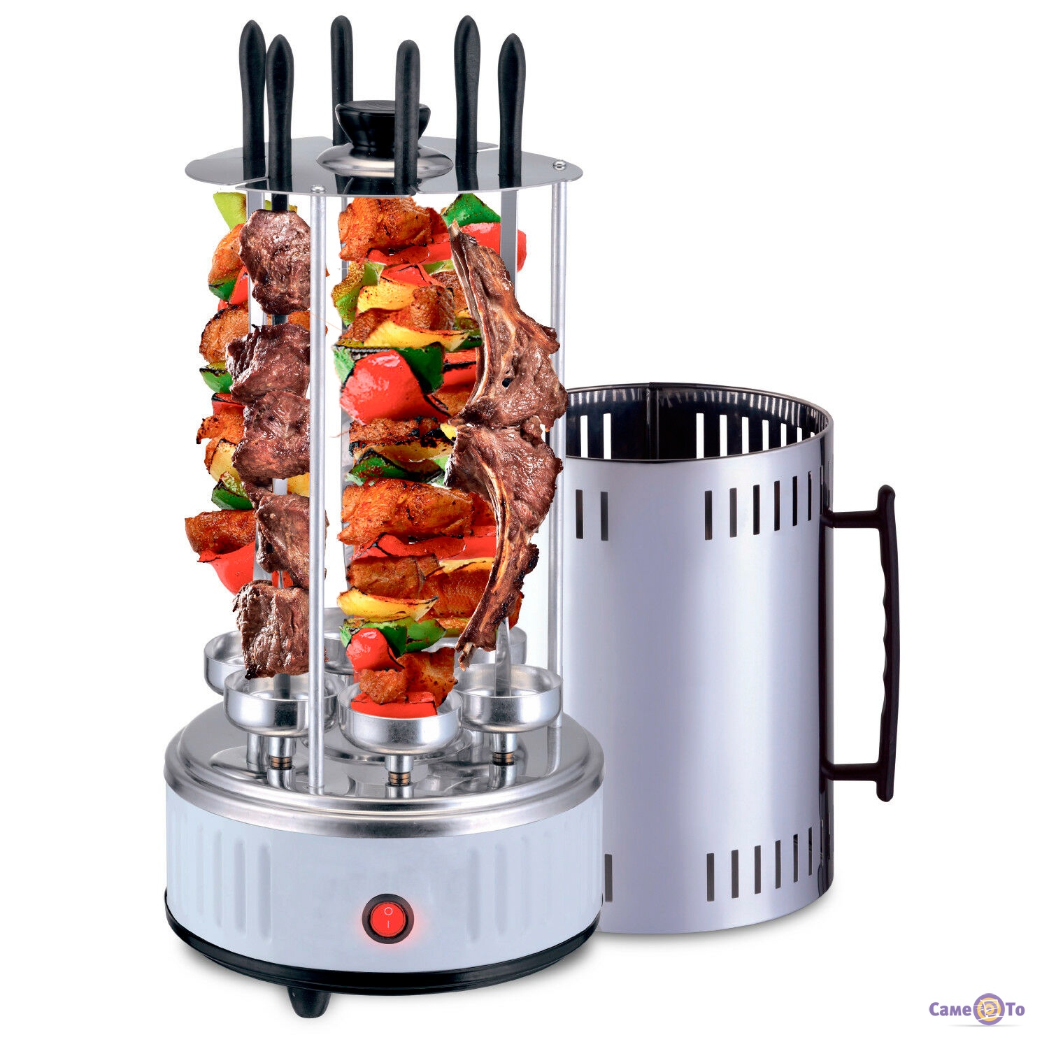Купити Електрошашличниця можна для використання в будь-якому приватному або квартирному будинку. Прилад розрахований на роботу в звичайній електромережі від розетки в 220 Вольт. Нагрівається м'ясо до 180 градусів, чого достатньо для рівномірного обжарювання протягом півгодини, а овочі будуть готові ще швидше, тому підготуйте всі складові частини вашого шашлику за рецептом вчасно, щоб забезпечити рівномірне обсмажування не тільки м'яса, але і овочів. Шампури зроблені так, щоб вони ставилися в спеціальні поглиблення в нижній частині приладу, тому м'ясо буде просмажене правильно. Доповнюється все функцією автоматичного обертання, тому вам потрібно лише вставити шампури з м'ясом і дочекатися готовності шашлику.